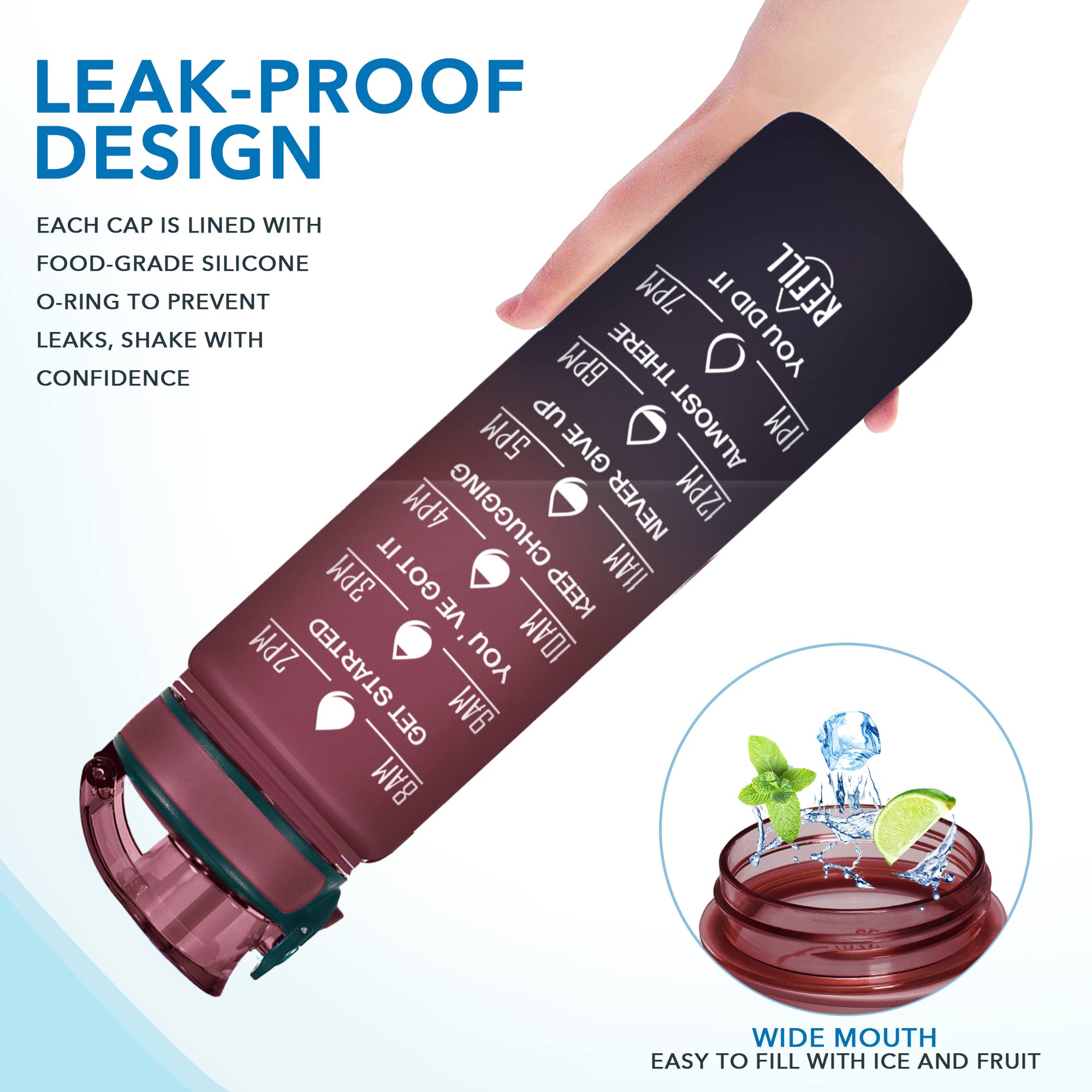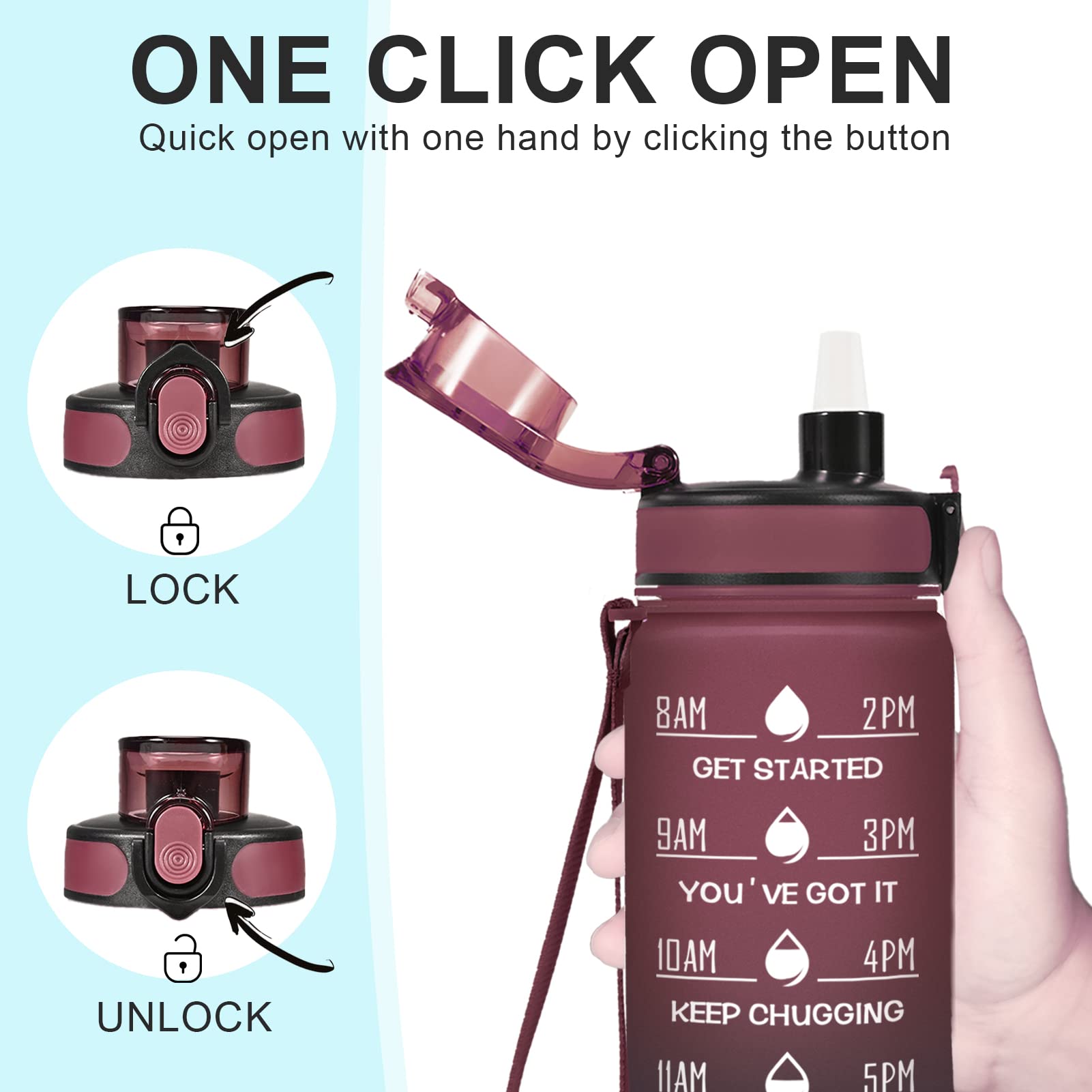 【Humanized Design】Water bottles with times to drink can quick open with one hand. The flip-top lid is used a secure lock, making it dust-free and leak-proof. Time water bottle is portable, light, and easy to use.