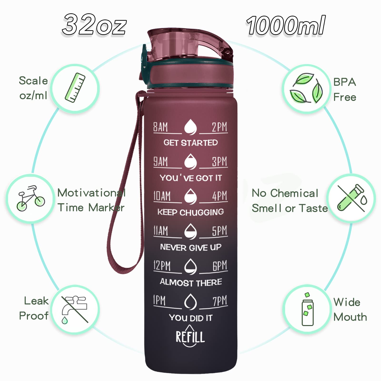 【Stay Motivated and Hydrated】32 oz water bottle with unique quote and time marker are inspirational, convenient for tracking your daily water intake and reminding you of being hydrated. Drinking bottles is suitable for any activities.