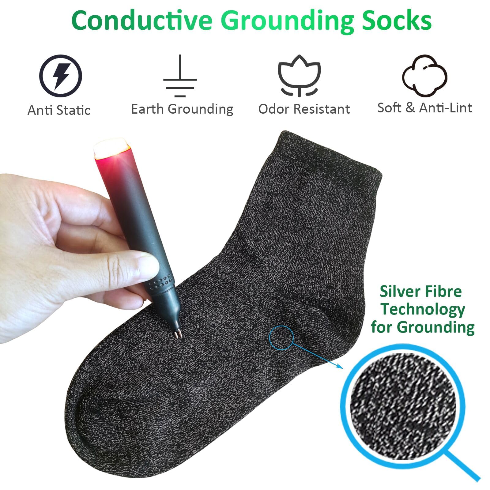 【Silver Fiber Grounding Technology】20% Silver Fiber+ 60% Cotton+ 20% Spandex. Merisky conductive grounding socks keep you grounded while wearing your grounding shoes, or when walking directly on the ground without footwear