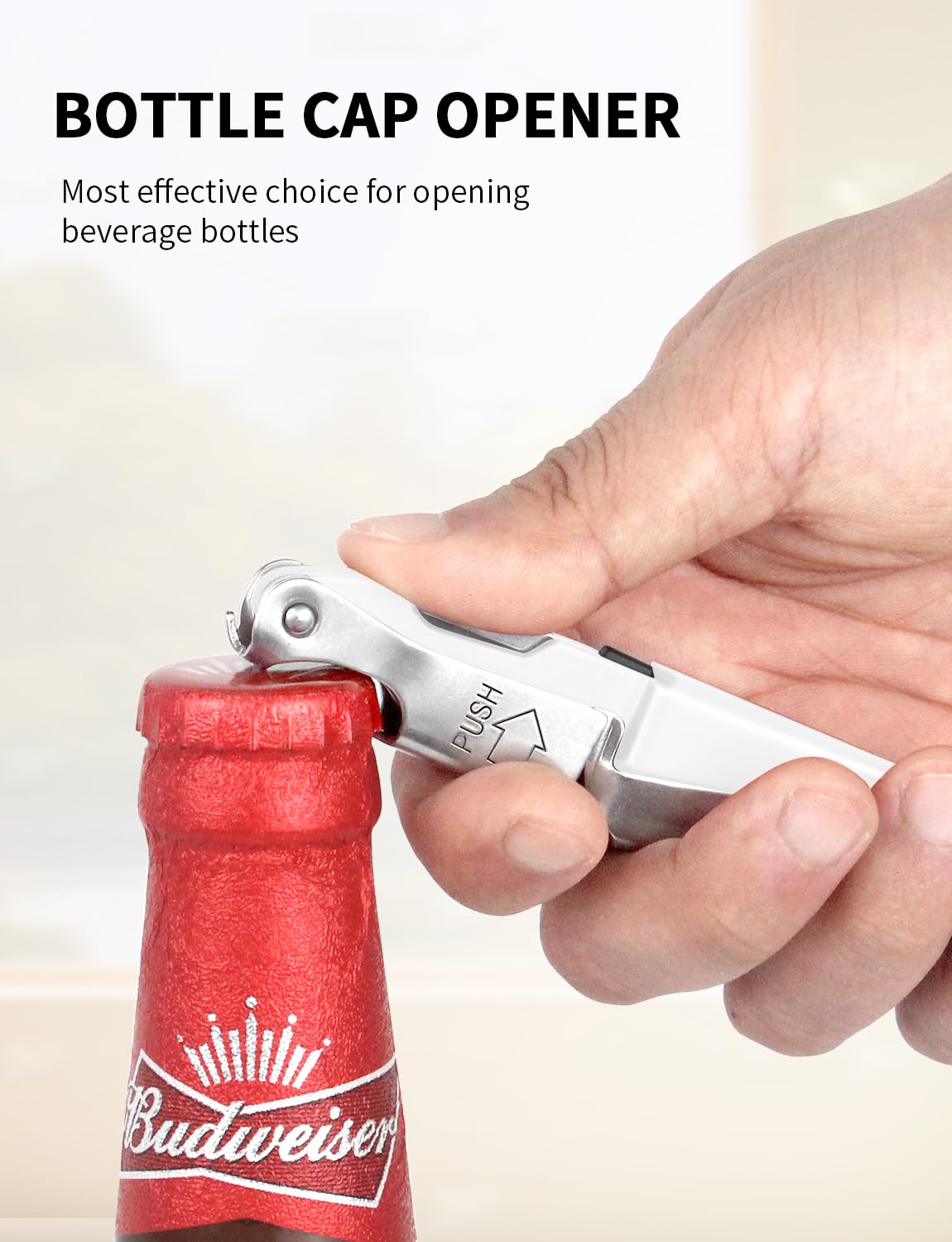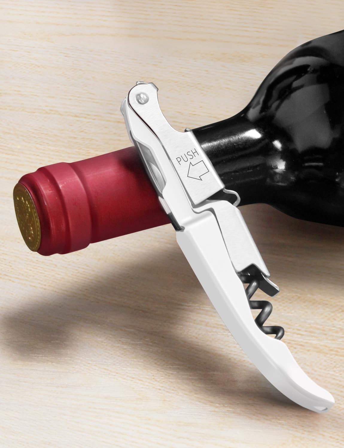 ✅【THE MULTI-TOOL MASTER FOR ALL BEVERAGES】CORKAS bottle opener goes beyond just uncorking wine! This versatile tool features a sharp serrated foil cutter to remove bottle seals and a built-in bottle cap opener. After cutting the foil, just pull open the lever arm, the knife will close automatically! Whether you're enjoying a glass of wine, a refreshing beer, or a bubbly soda, the CORKAS is your one-stop shop for effortless beverage opening.