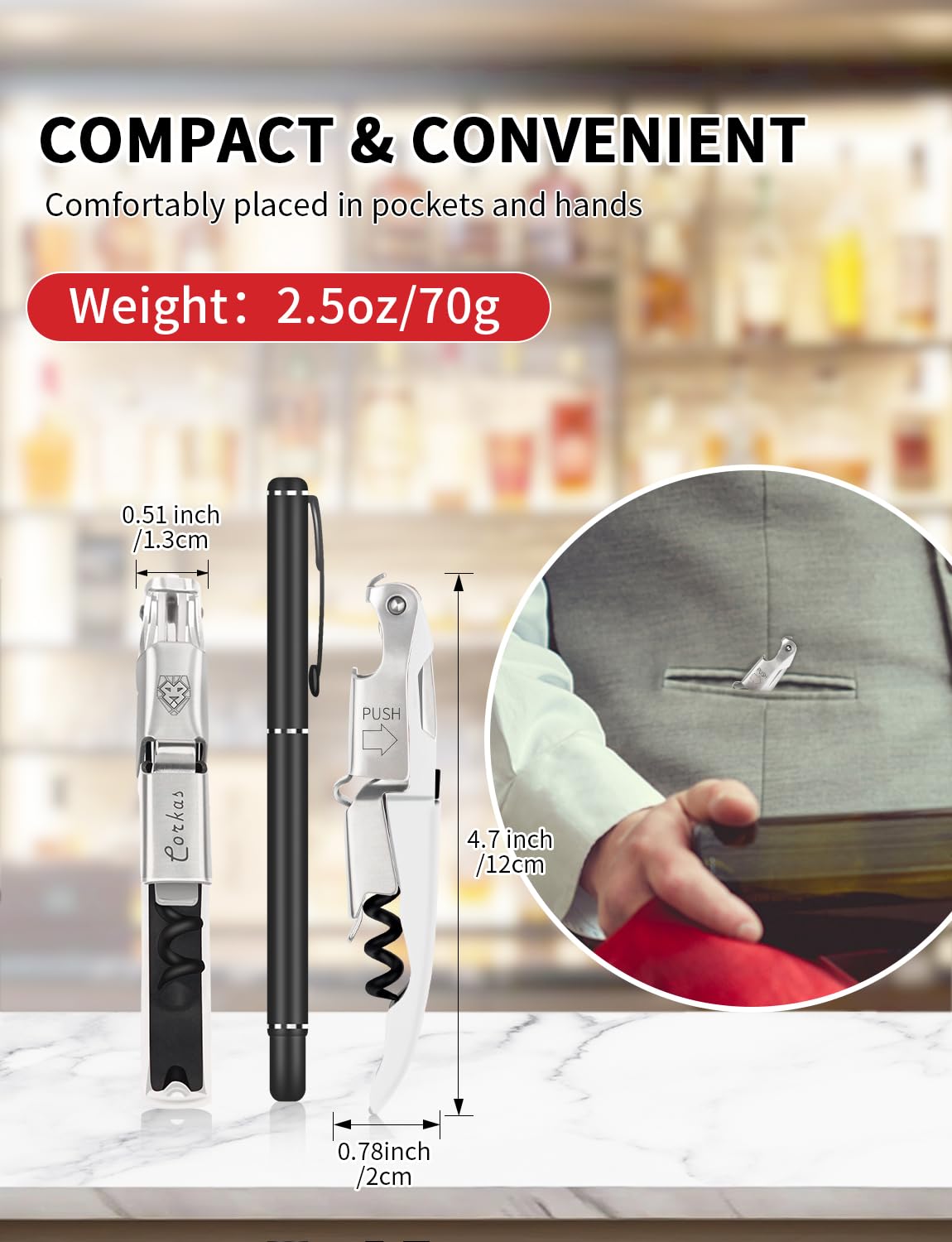 ✅【THE IDEAL WINE LOVER'S GIFT】This beautifully crafted, multifunctional tool is a thoughtful and practical present that will be appreciated for years to come. The CORKAS corkscrew wine opener elevates the wine drinking experience, makes an perfect gift for wine lovers. Ideal Father’s Day, Mother's Day, Christmas, Birthday, bridesmaid or groomsman gifts for men, women and sommelier, bartender, servers, any wine enthusiast. Great party supplies.