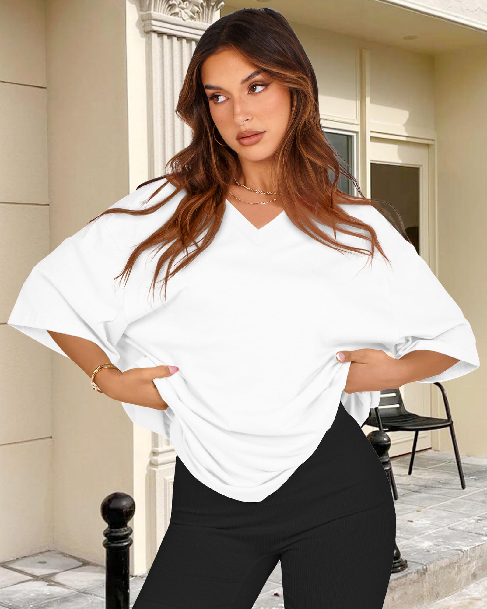 Match: Womens oversized tee shirts can be effortlessly matched with various garments, such as yoga pants leggings, shorts, skirts, or jeans, Womens t shirts can also be adorned with sunglasses or necklaces to boost your elegance