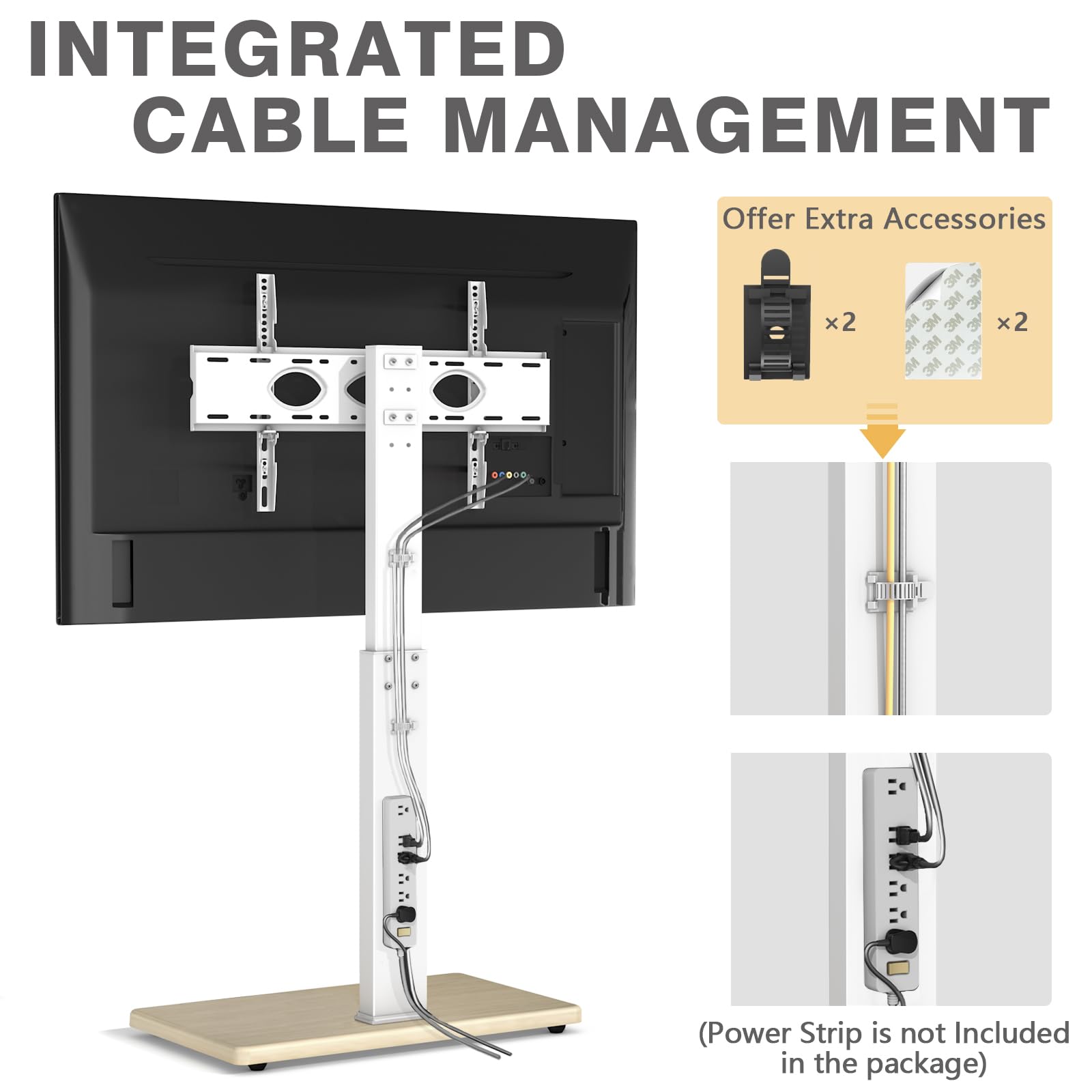 Space Saving & Cable Management-Open up your Space: The standing tv mount takes less area and offer a tidy room for you. The white tv stand for bedroom has white finish of the shaft with cable management to hide the messy cable, making your home clean and tidy without drilling holes on the wall.