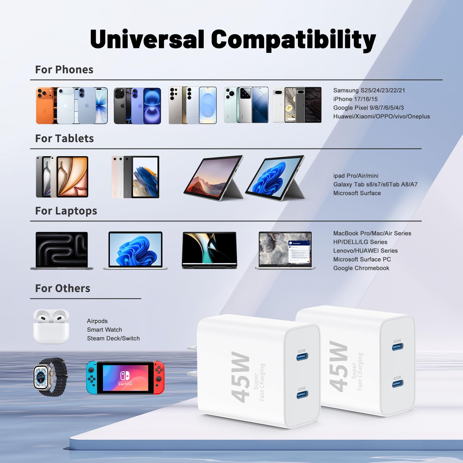 【What you can get 】: 2 Pack 45W iPhone 17/16 /15 Fast Charger & 4 Pack 3/6/10/10FT iPhone 16 usb c to usb c Charging Cable. 18 months worry-free guarantee.If you have any questions, please contact us and we promise to solve your problem within 24 hours.