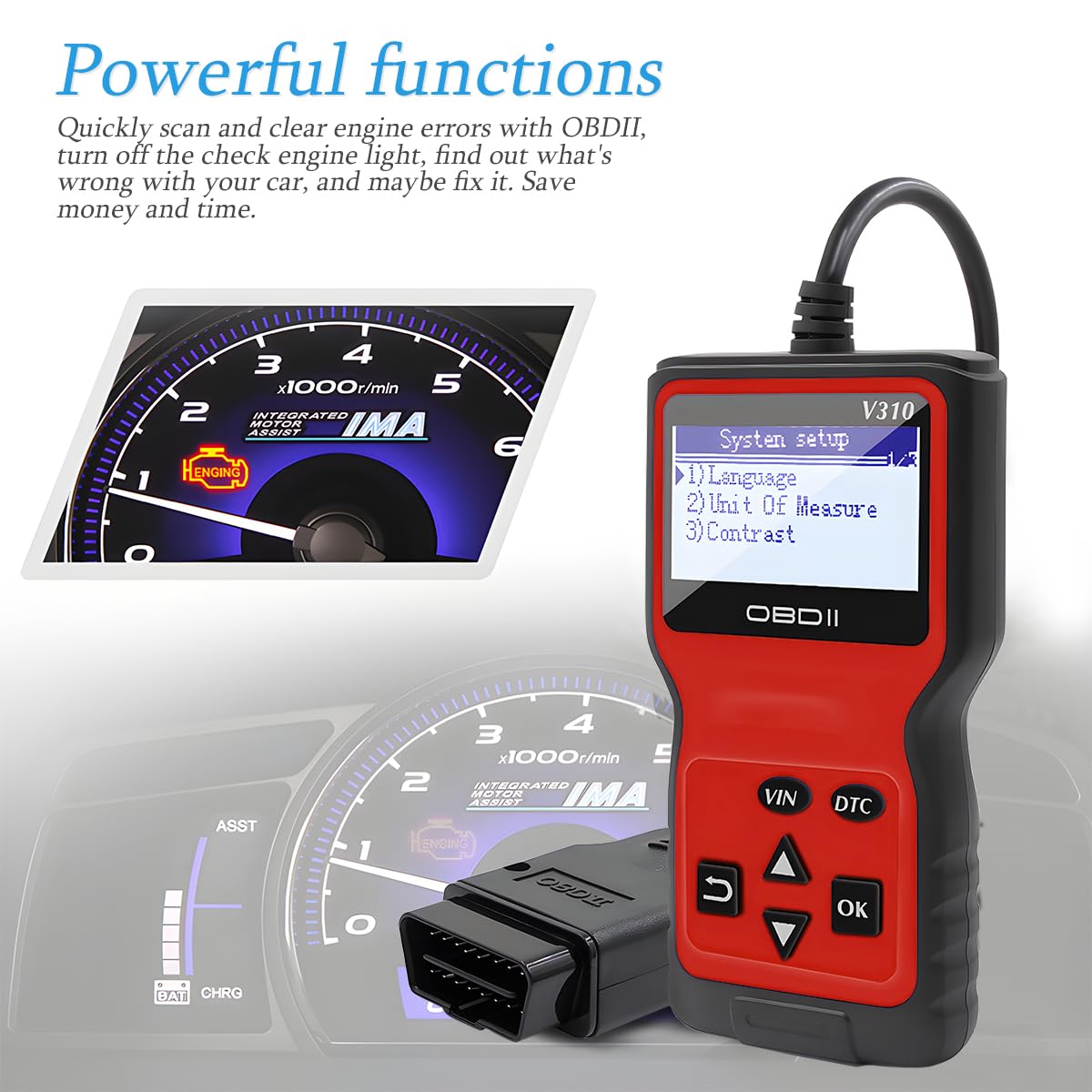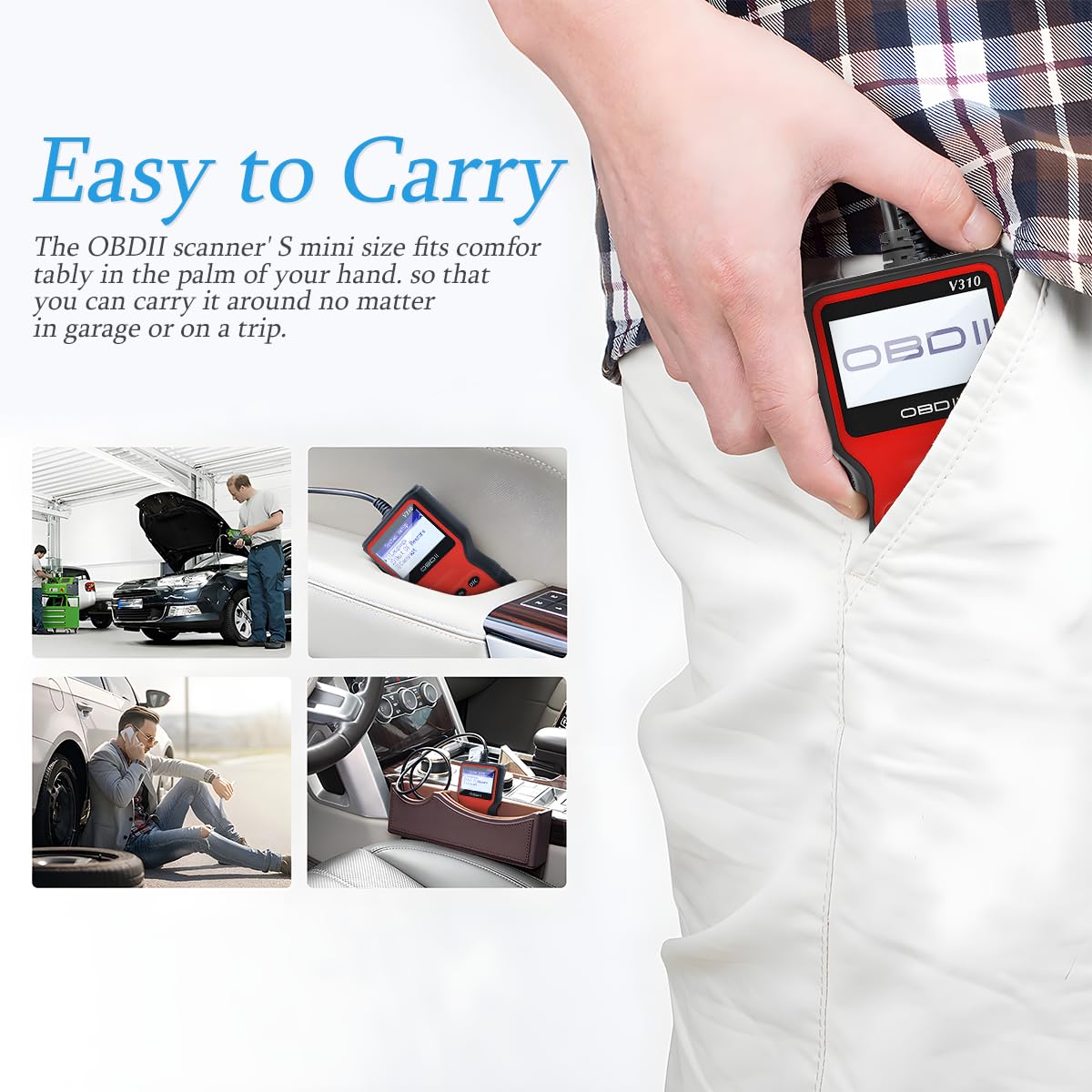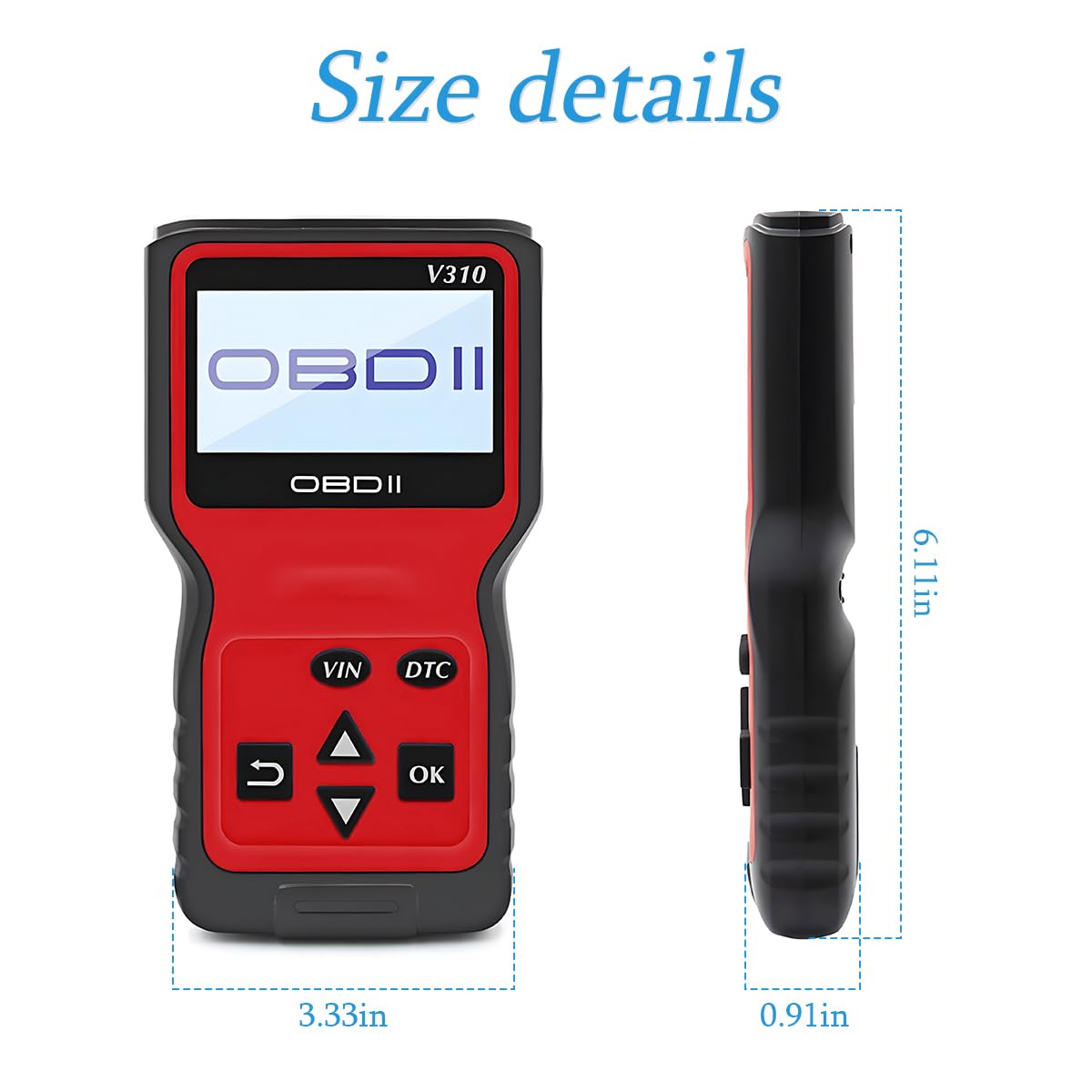 Convenient & Portable: OBD2 diagnostic tool is very easy to use, you just need to plug it into your car's OBD port and turn on the ignition, you will be able to find the problem about your car's engine system and possibly fix it. The compact size of 6.10 x 3.34 inches is easy to grip with one hand, and you can put it in any toolbox or pocket, and it doesn't take up too much space.