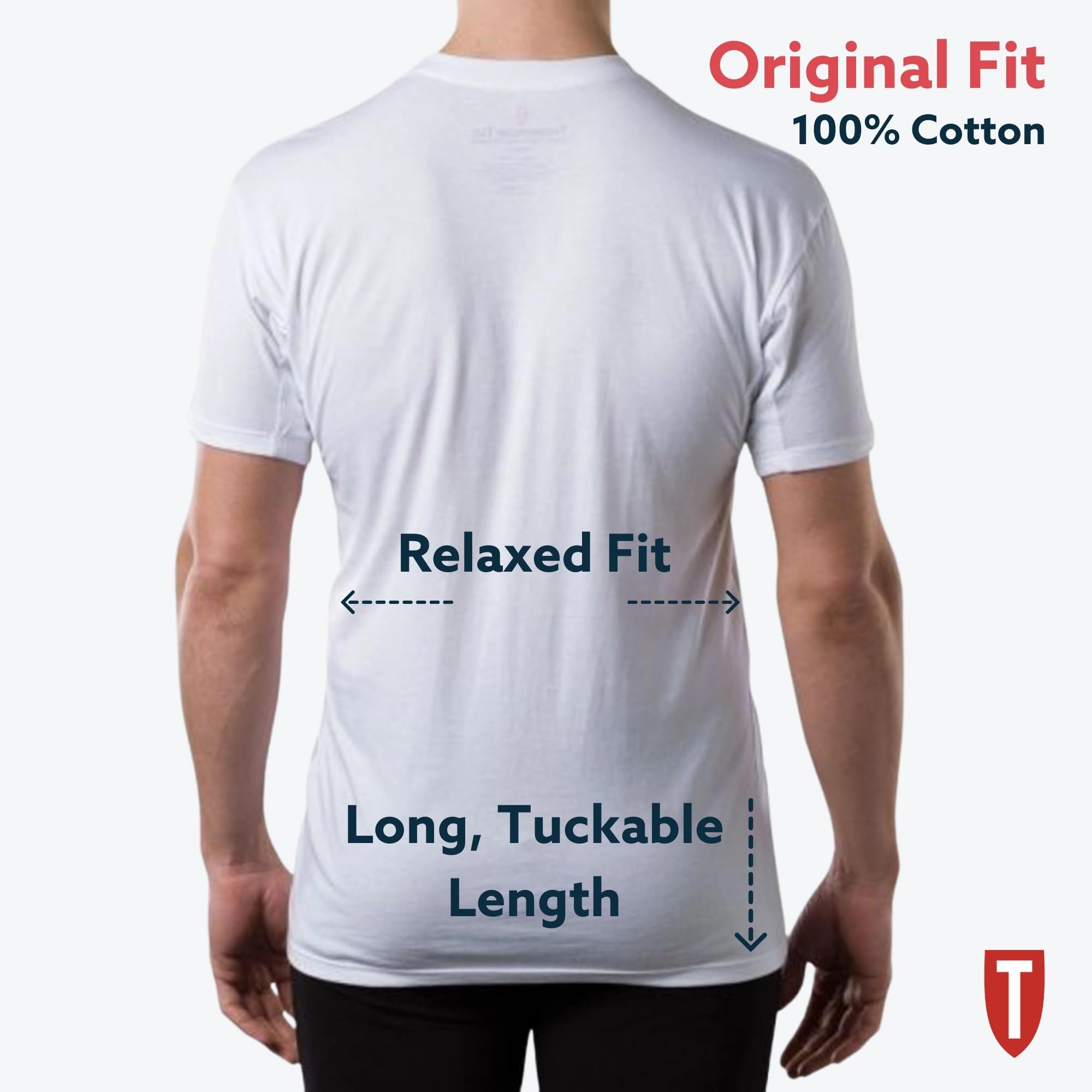 Versatile Sweat & Odor Defense T-Shirt: Our stylish men's deep v neck undershirt complements any outfit while discreetly keeping sweat and body odor at bay, giving you the confidence to wear any dress shirt without fear of sweat marks; these original fit undershirts are made from 100% premium combed cotton (Heather Grey 90/10 cotton/poly) exclusive of the underarm pads inner layer; tagless with a lay-flat collar for a seamless fit