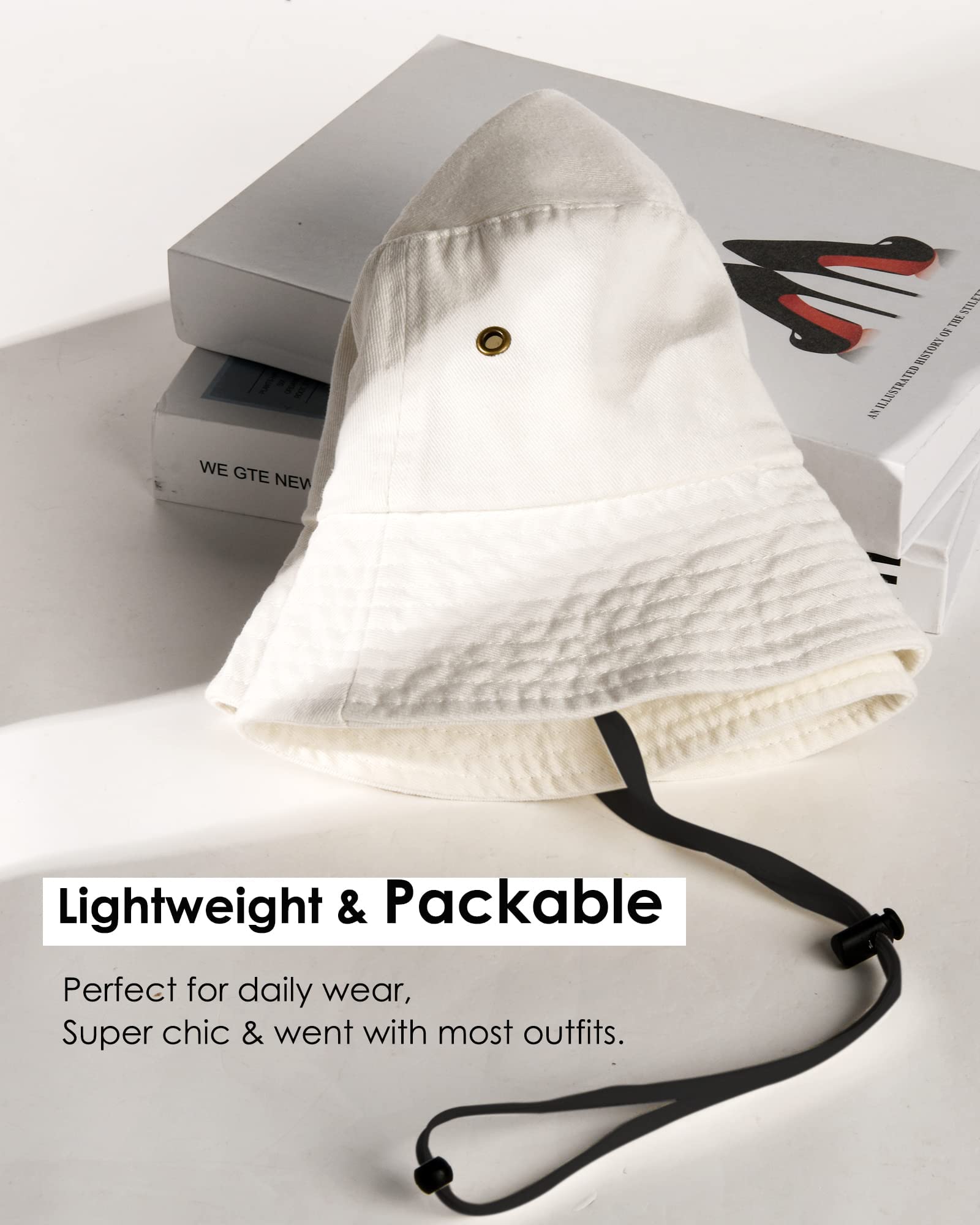 Bucket hats for women comes with a adjustment buckle which can help to bring a snug fit for you,and if you feel large or small , you can adjust by it; Adjustable chin strap holds hat in place, even during windy day, and is easy to attach and detach; An inner sweatband ensure your utmost comfort