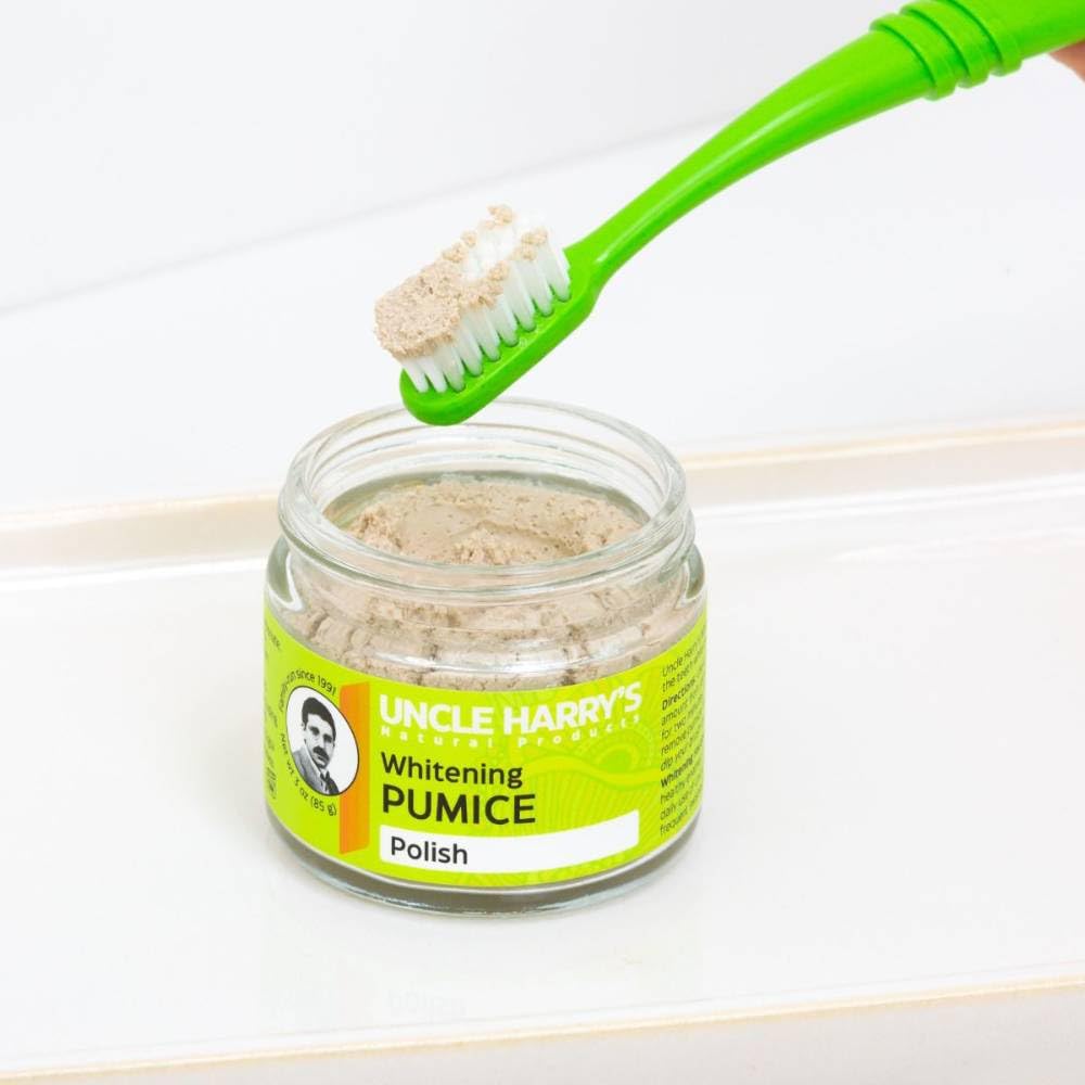 Ditch the whitening strips and avoid increased tooth sensitivity! Whitening Toothpaste Polish helps to remineralize the enamel, balances the pH level of the mouth, and freshens breath. Finely ground pumice is an all-natural tooth polisher and mild abrasive. Uncle Harry's Whitening Toothpaste Polish gently removes stains while also fighting off bacteria. Uncle Harry's Natural Products is dedicated to making earth-friendly products at people-friendly prices. Their mission is to respect the Earth and all of its inhabitants by offering the cleanest and most affordable body care products available, using only the finest quality, minimally processed ingredients, including local, organic, cruelty-free, and sustainable raw materials. Completely free of fluoride, carrageenan, triclosan, artificial sweeteners, and SLS. Gluten-Free, and Vegan. Made in the USA.
