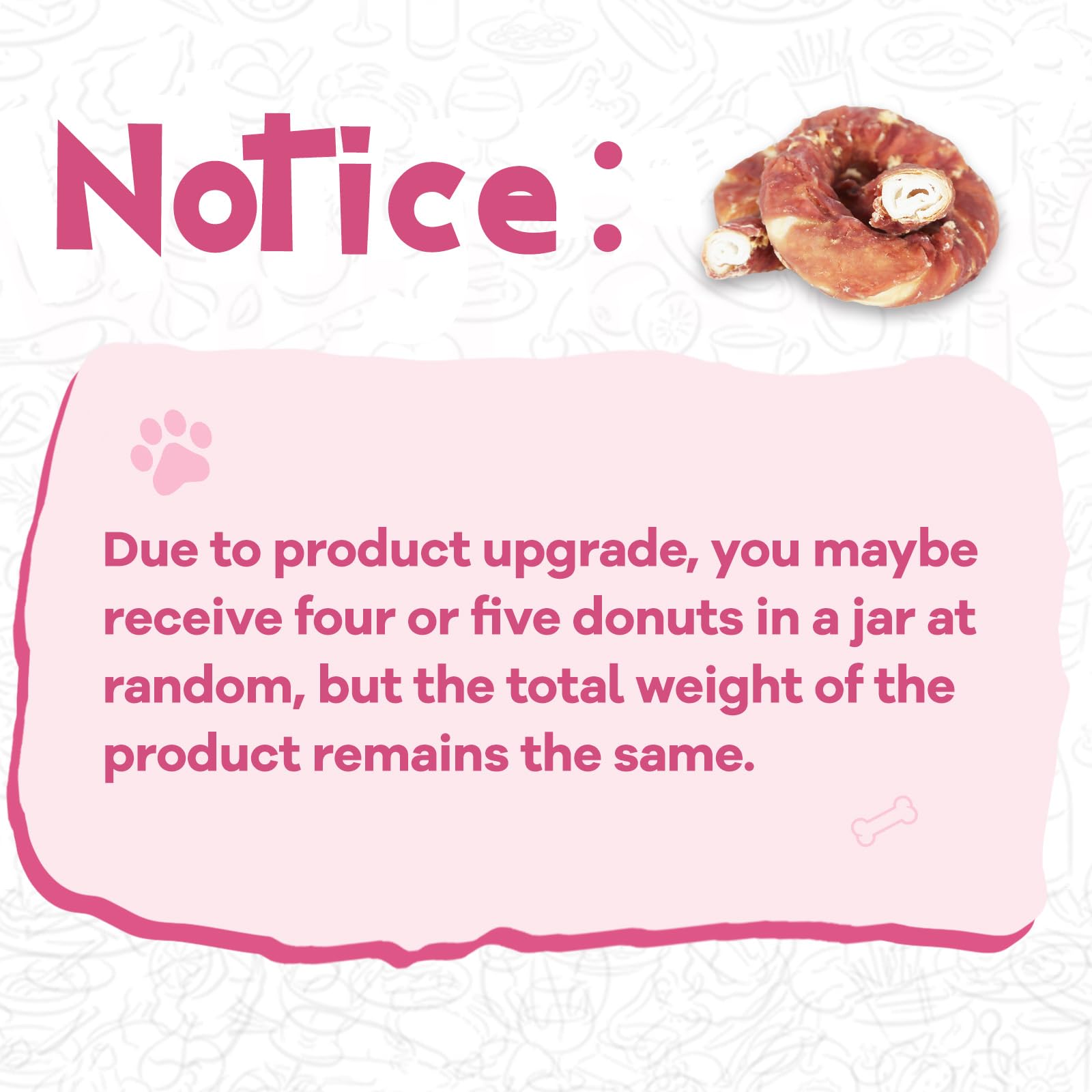 BRIGHT DOG'S TEETH: Our dog treats with rawhide provide fun chewing enjoyment to your dog and help solid teeth and control tartar. Keep dogs' jaws strong and breath fresher. The donut shape attracts the dog's attention more
