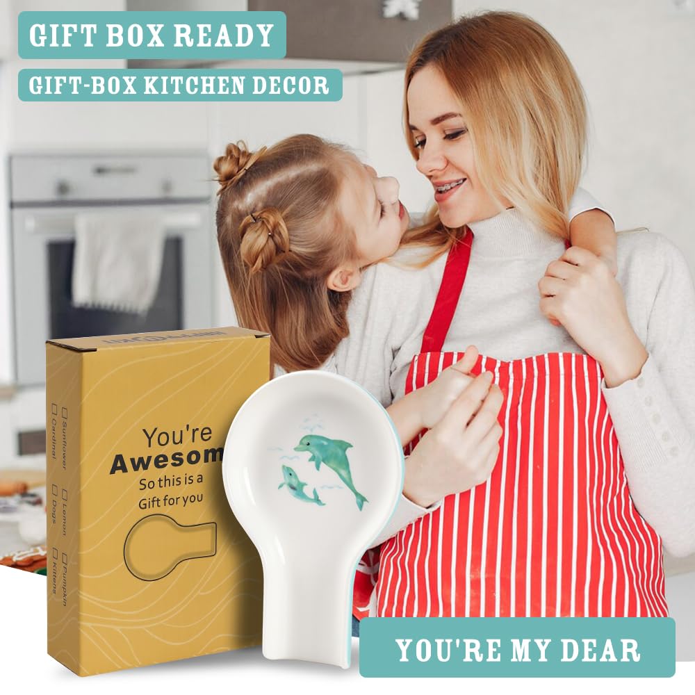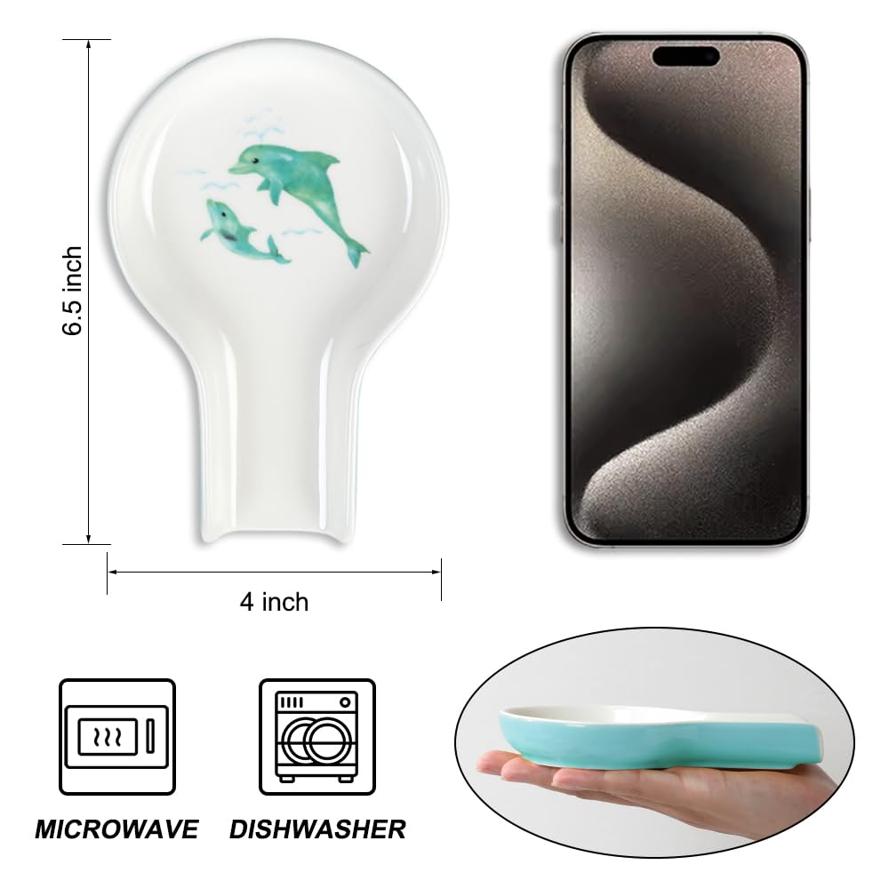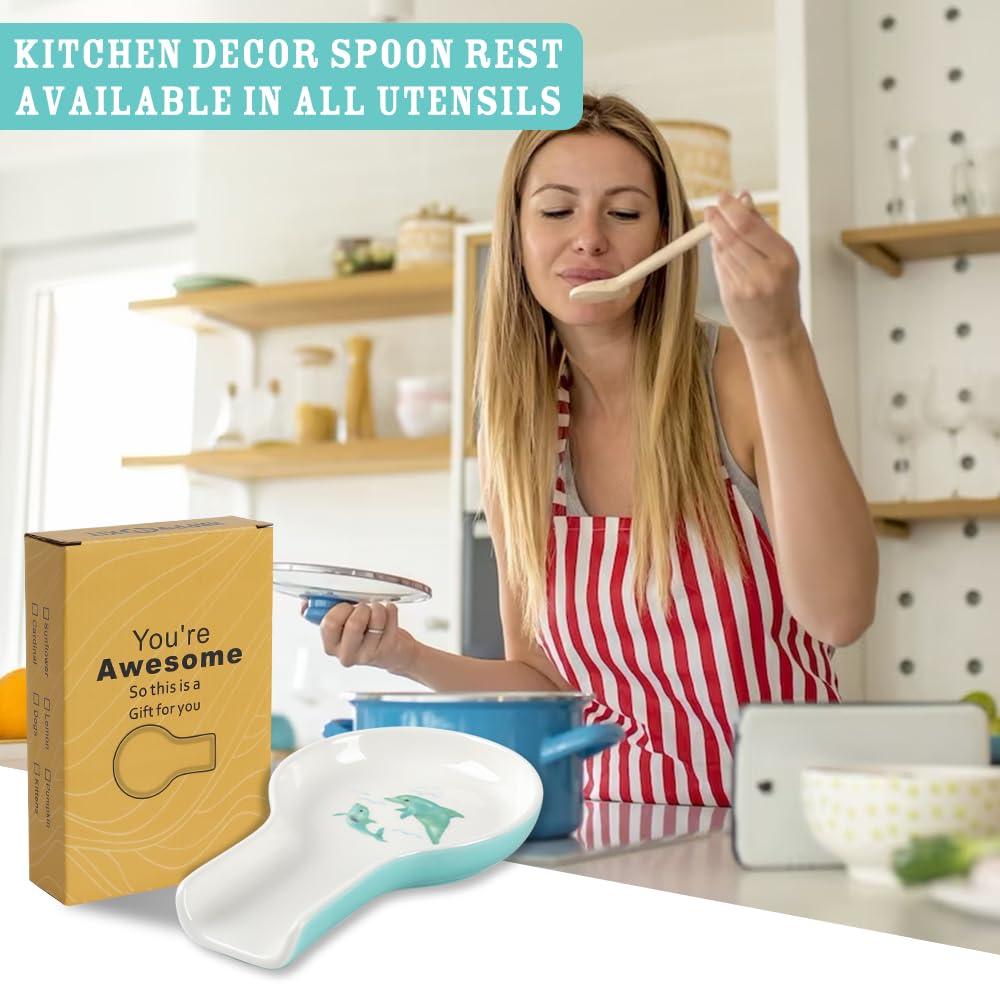 Dolphin Spoon Rest for All Utensils- A delightful addition to any kitchen countertop. Its whimsical design is both eye-catching and functional. Not only does it accommodate a multitude of cooking utensils such as slotted spoons, long-handled spoons, and spatulas, but it also brings a splash of color to your cooking space.