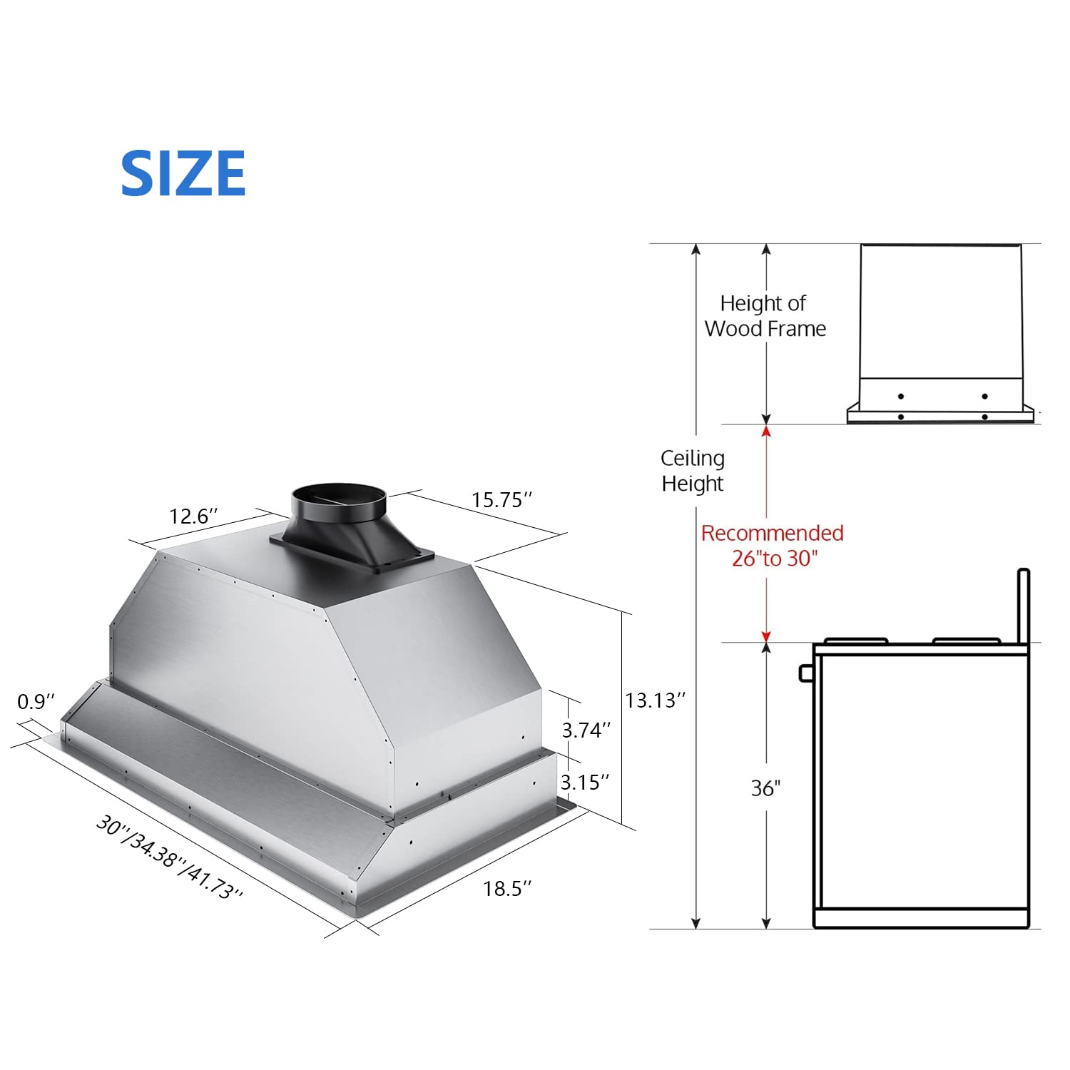 【Modern Design】: IKTCH Insert Range Hood is made from stainless steel, which has an elegant appearance and comes with remote control. The novel gesture sensing function gives you a whole new experience.