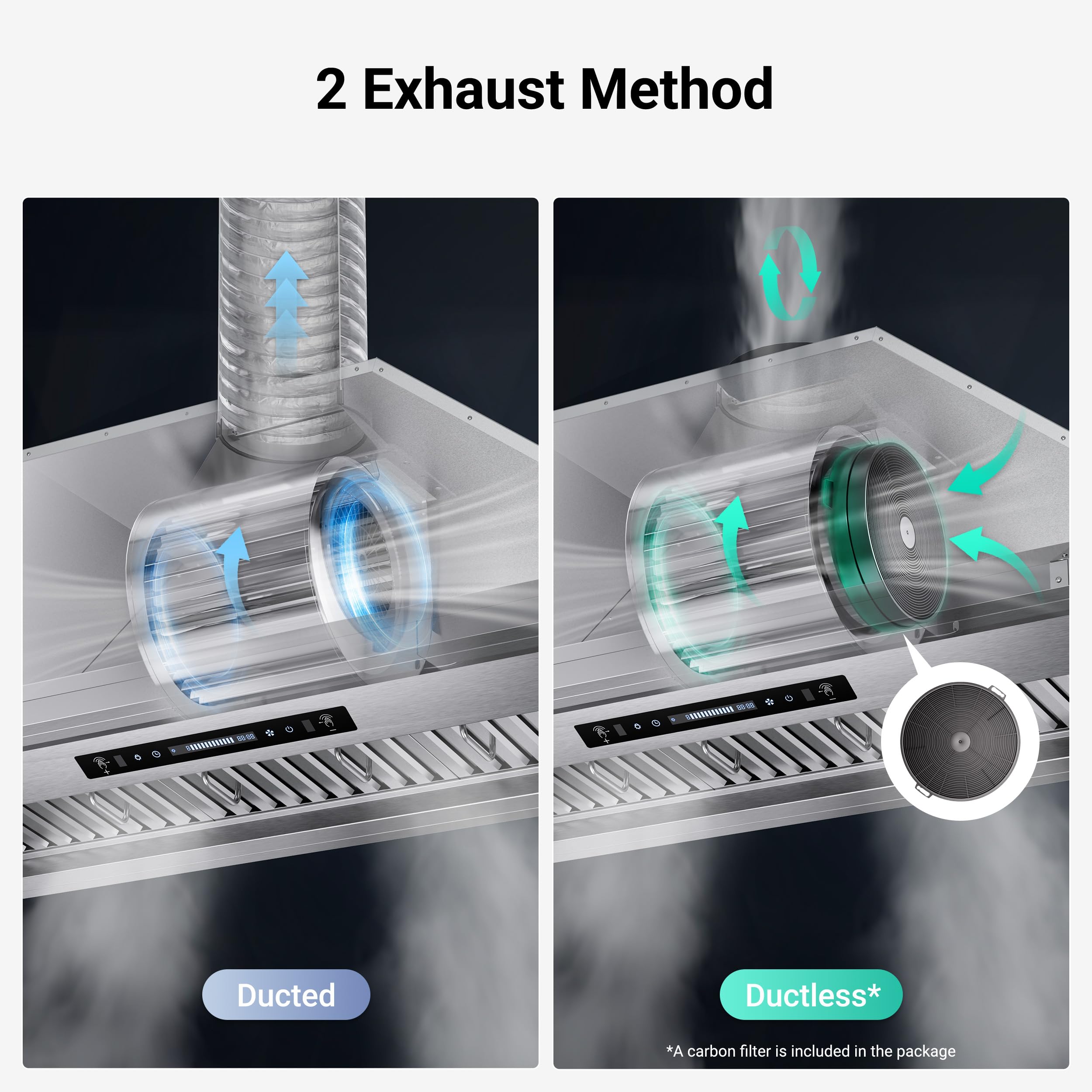 【Powerful Airflow】: Maximum 900 CFM large airflow with good balance fans efficiently removes large amounts of smoke and cooking odors with ease from the air in your kitchen.