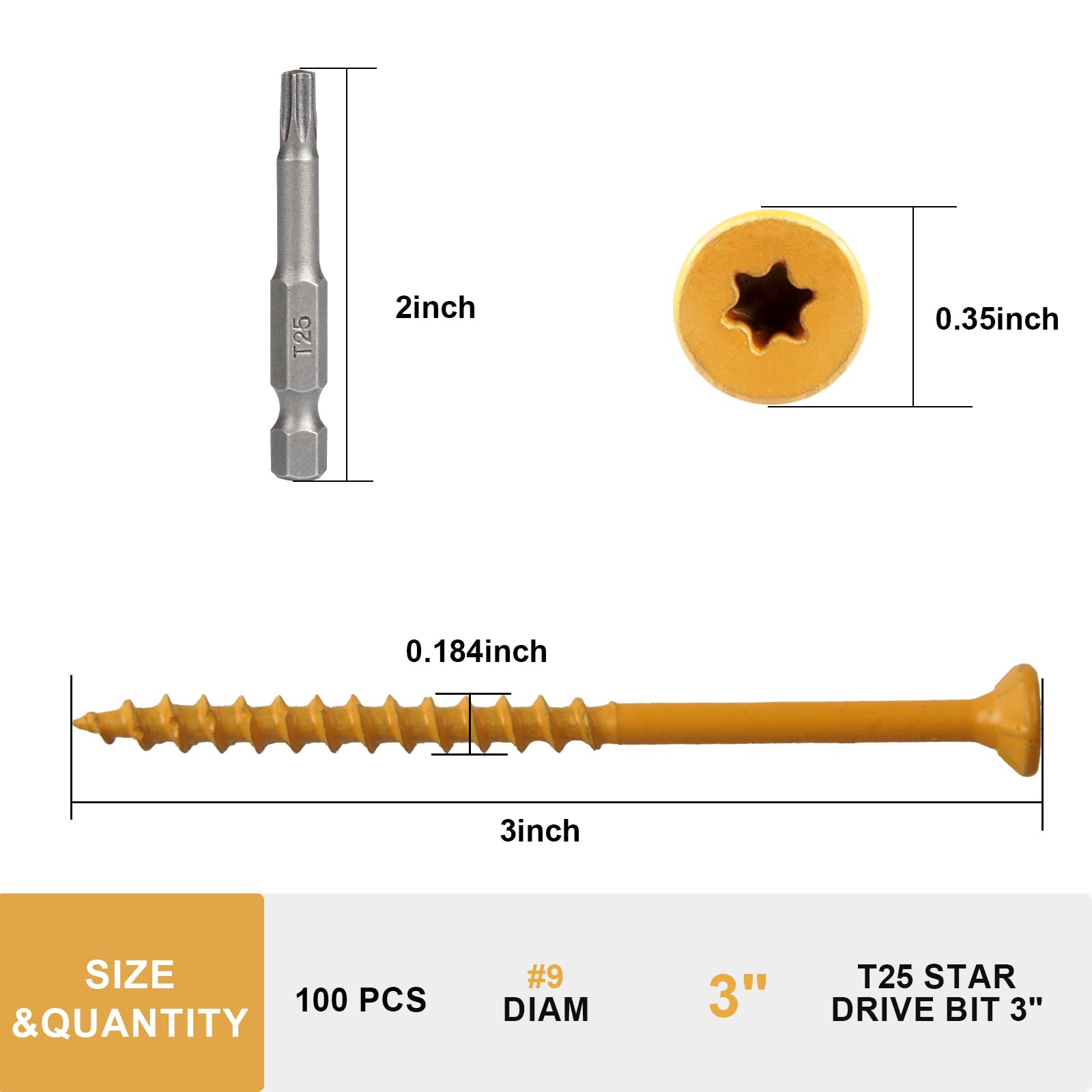 T25 Star/Torx Drive: T25 star/torx drive deck screws come with 6 contact points. This drive saves driving torque and further secures the screws into the wood structure, Designed to eliminate loosening and Shedding when tightening screws