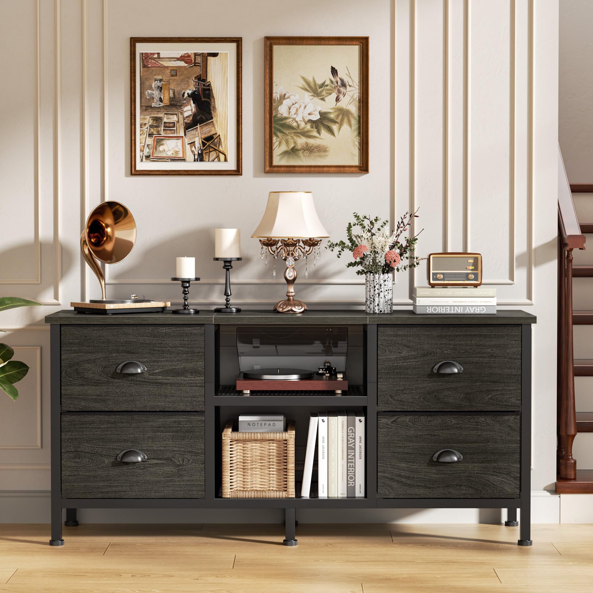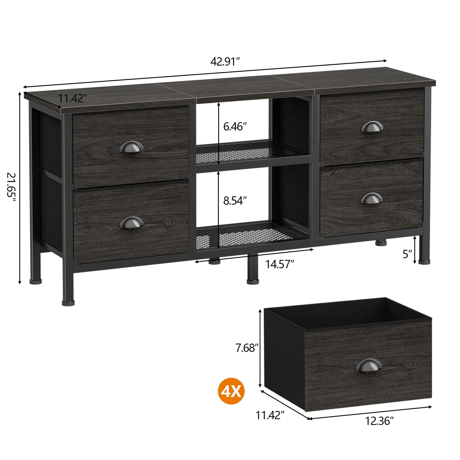 Dresser TV Stand with Drawers: This TV stand with 4 fabric drawers, lightweight and breathable, providing ample storage space, such as: toys, books, remote control, etc. It is the ideal place to store personal items.
