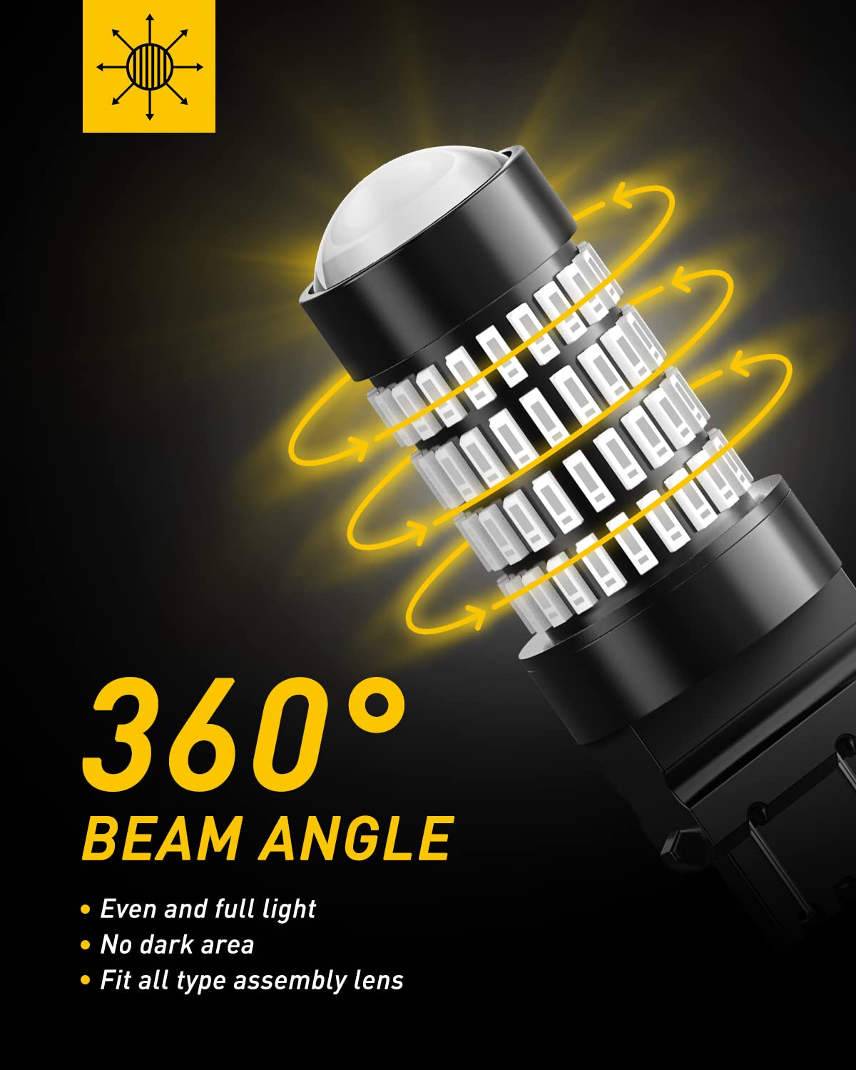 【360°LIGHTING】Each 3157 red led bulb equipped with 102 pieces high power 4014 led chips, no dark spots. These 3157 led bulbs are protected with HD projector ensures optimal visibility and stronger light penetration