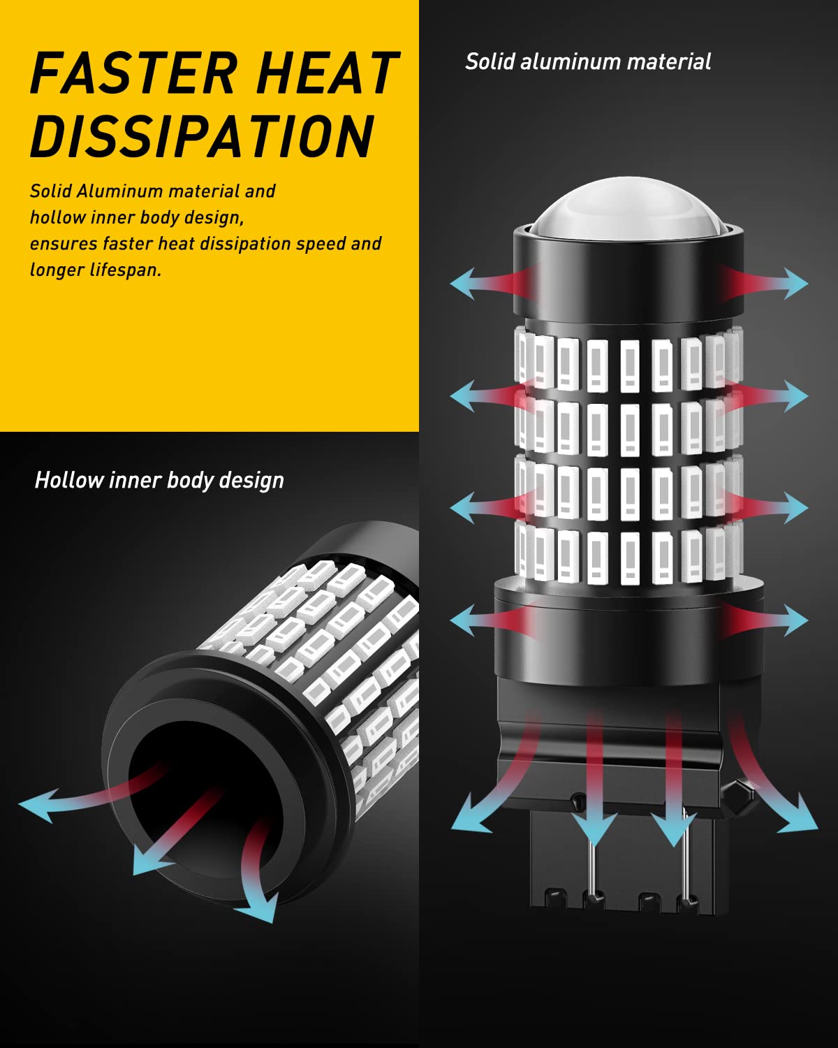 【LONGER LIFESPAN】Solid Aluminum material and hollow inner body design make these 3157 led tail light bulbs faster heat dissipation, stable performance and longevity, lifespan can be up to 30,000 hours