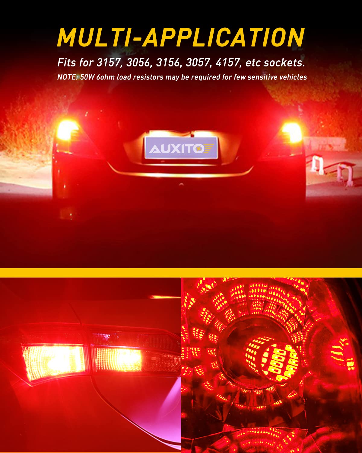 【MULTI APPLICATION】These 3157 led red bulbs can be used as brake lights, tail lights, high mount stop lights, etc. After installing these 3157 led red bulbs, some sensitive vehicles may meet canbus issues, such as flicker, hyper flash, error warning or can't be turned on, etc, 50W 6ohm load resistors may be required to solve the issues