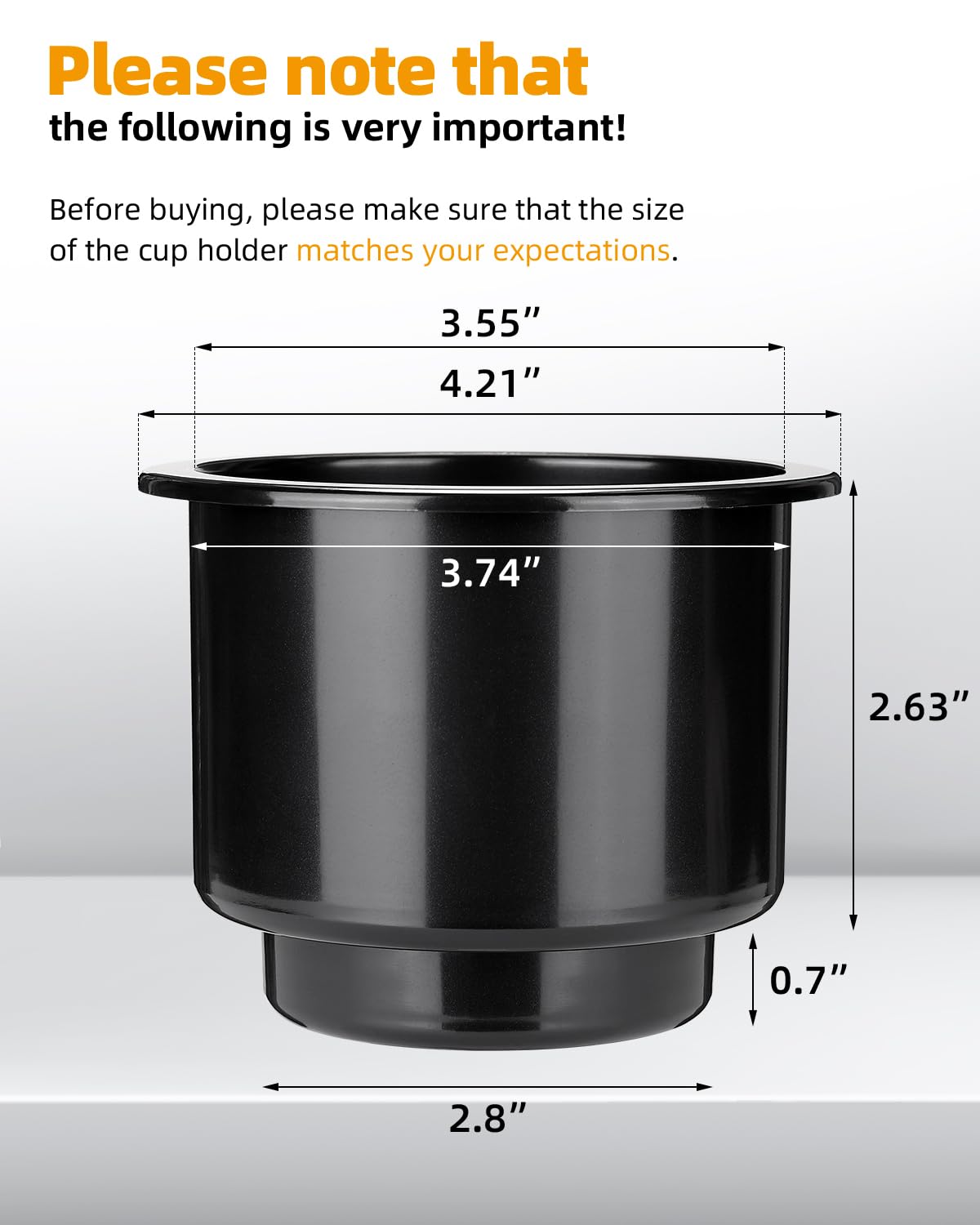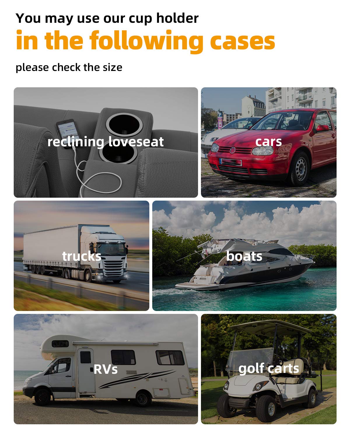 Our cup holder inserts suitable for boat, RV, or cars with 3.74"-4.1" cup base (Please measure the diameter in advance before you make the purchase). Joytutus cup holder inserts also can perfect replacement couch cup holder