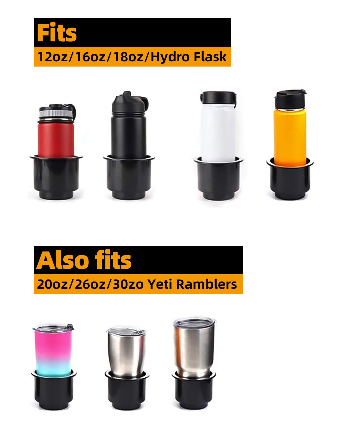 The cup holder can perfectly hold your Hydro Flasks Yeti Ramblers or other large bottles