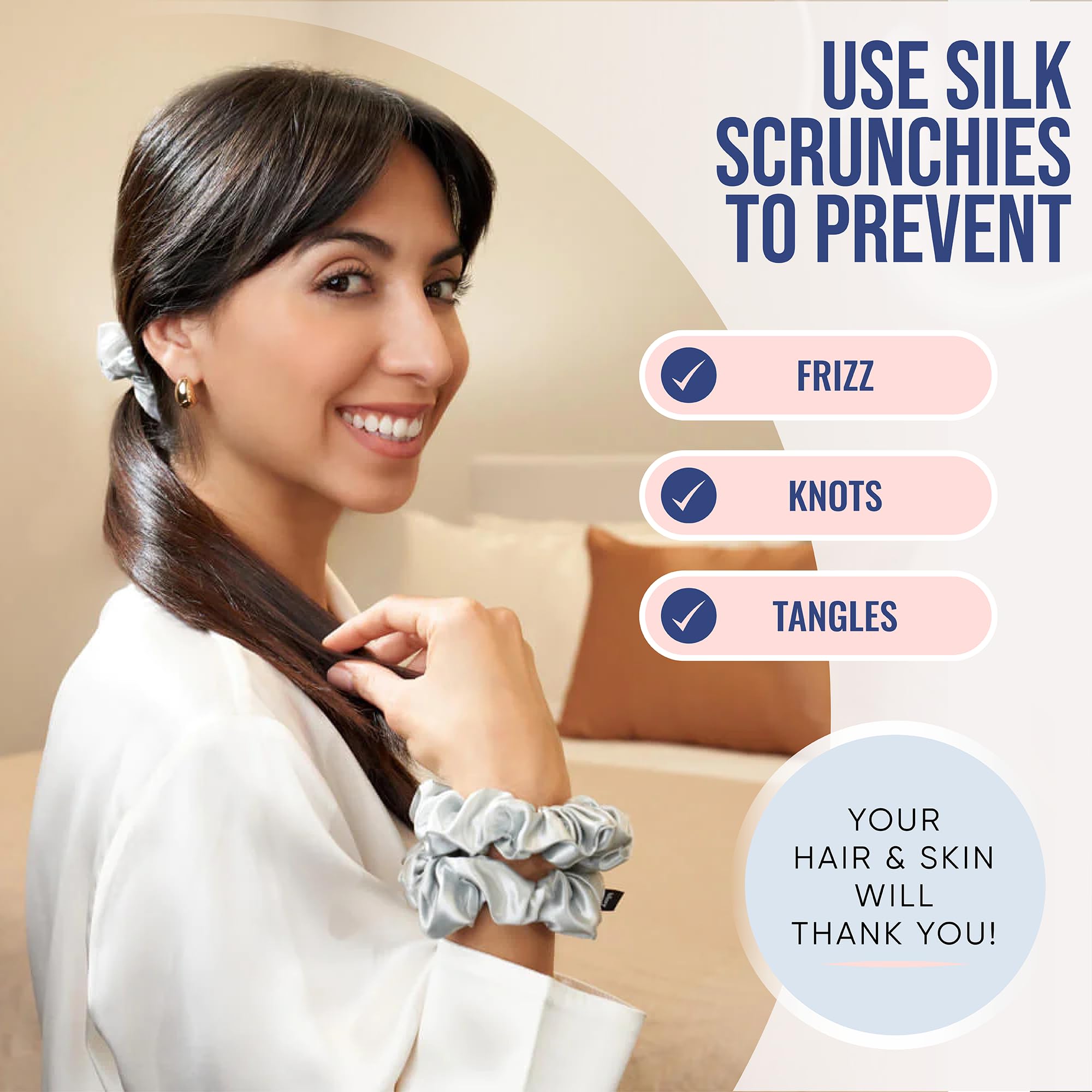 Hair Protection: Designed to prevent breakage and tangling, our silk scrunchies for hair sleep reduce friction while you rest. Ideal for maintaining healthy, strong hair, they help keep curls smooth and straight styles pristine without creasing.