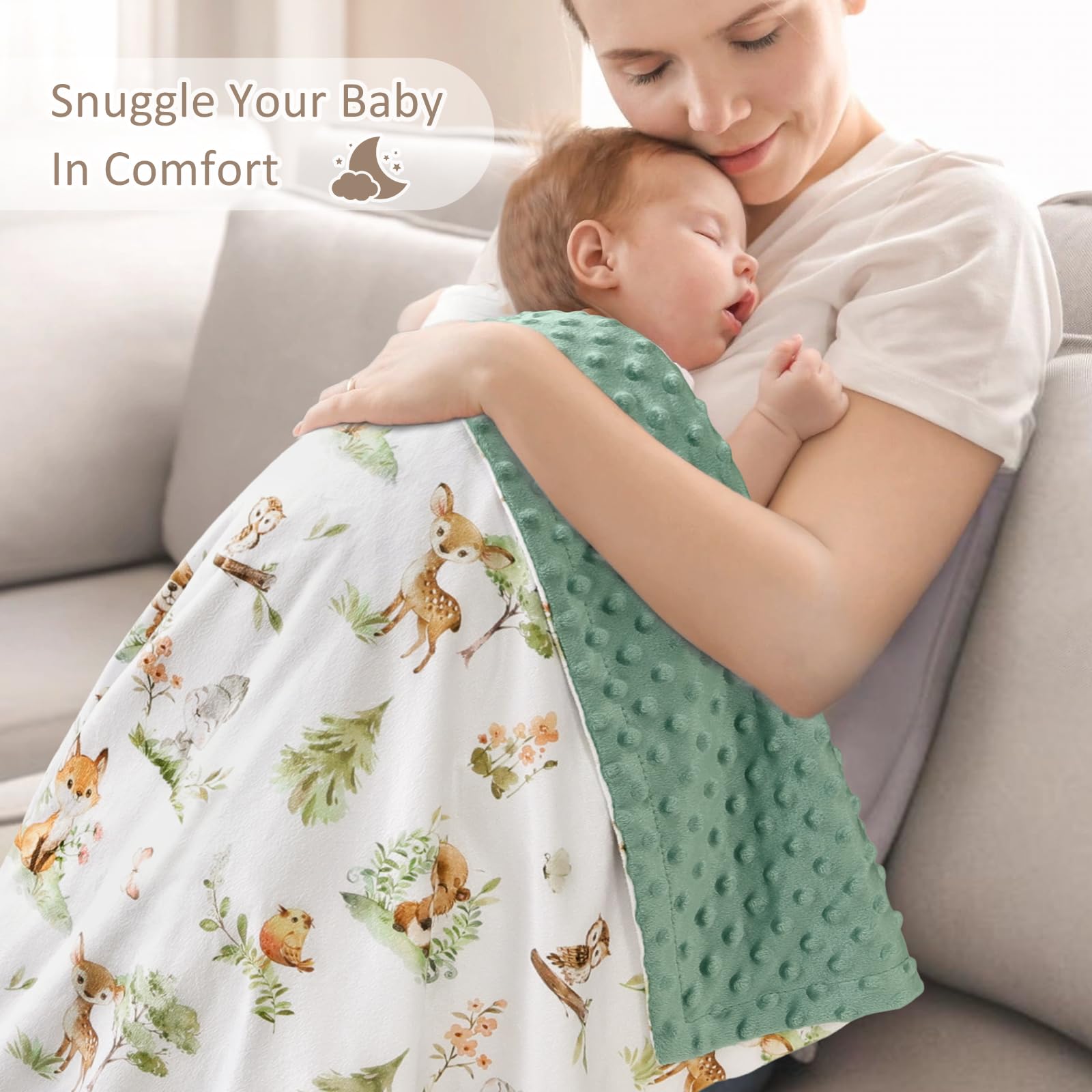 VERSATILE USAGE SCENARIOS:Infant blanket in 30 x 40 inch is perfect for Sleeping, Stroller Cover, Nursing Cover, Burp Cloth. Also great for fur babies or adults, cover your legs in office or travelling outside with the perfect finishing touch