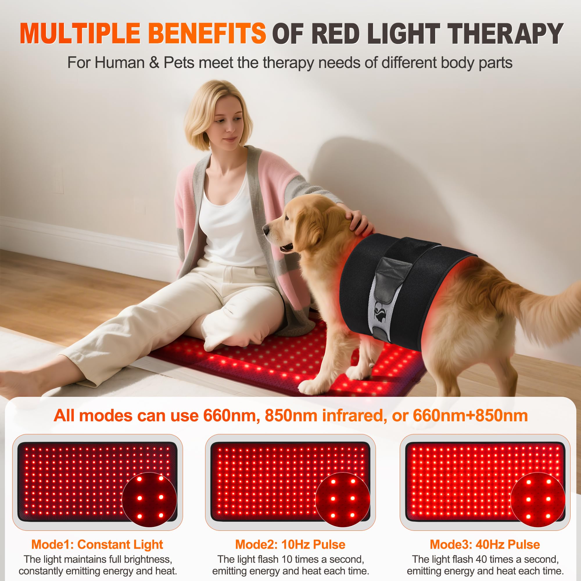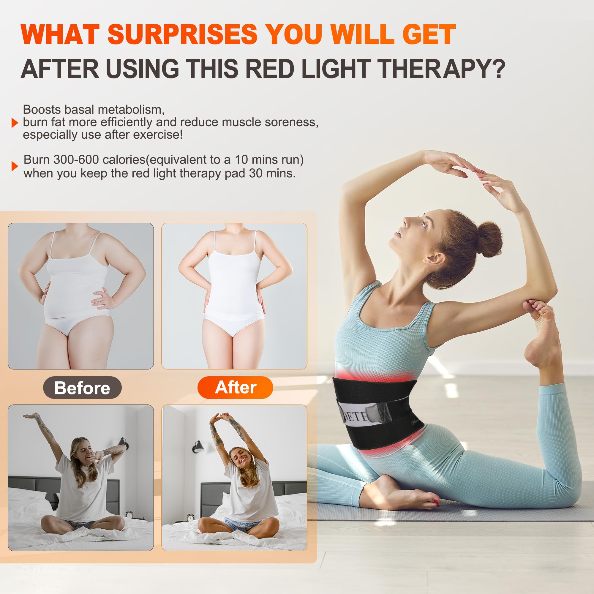 🔥𝗠𝗨𝗟𝗧𝗜-𝗙𝗨𝗡𝗖𝗧𝗜𝗢𝗡𝗔𝗟 & 𝗟𝗔𝗥𝗚𝗘𝗥 𝗦𝗜𝗭𝗘: Infrared red light therapy provide 𝟮𝟰'' 𝘅 𝟭𝟮''𝘀𝗶𝘇𝗲, covers multiple body parts. Applicable to back/belly/waist/shoulder/legs/knees/feet. With elastic strap (wrap) fits most waist sizes, making more flexible in use, giving you more freedom, easy to wrap any body parts. Enjoy red light therapy belt while sitting, yoga, lying down at home or office! Also available for your pets.