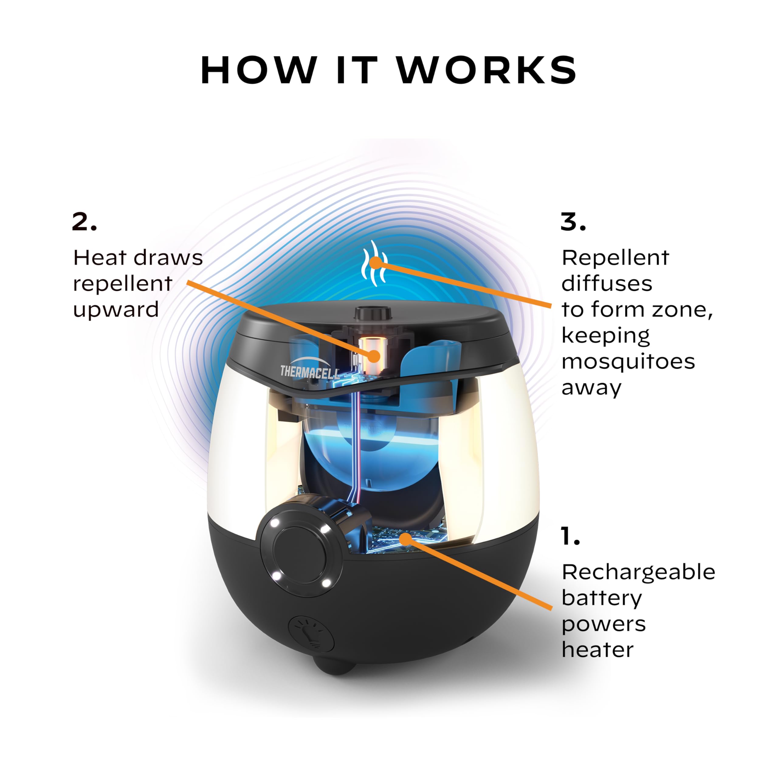 SCIENTIFICALLY PROVEN MOSQUITO PROTECTION: Thermacell is scientifically proven to repel mosquitoes from a 20FT zone. Recommended by outdoor experts and trusted to work in the toughest mosquito environments. Comes in a convenient starter pack complete with a repeller, charging cable, and 12 hours of refill.