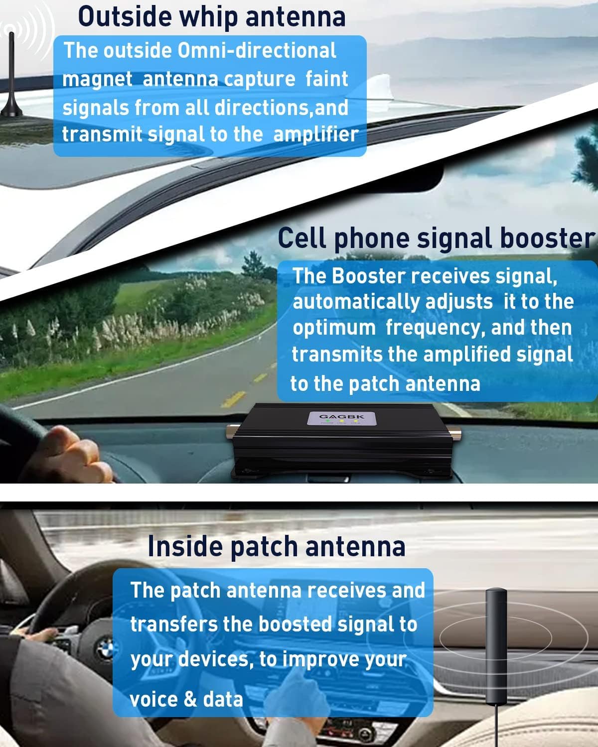 FCC Approved and Professional Technical Support: FCC approved car cell booster, designed with the high-quality components and repeated test for longevity and safety use, support 30 day money back, 3 year manufacturer warranty. GAGBK lifetime professional technical support, offer 24-hour friendly customer service, if any problems, please feel free to contact us, we will do our best for you, and if anything happens to any of the components, we will unconditionally replace those items for you.