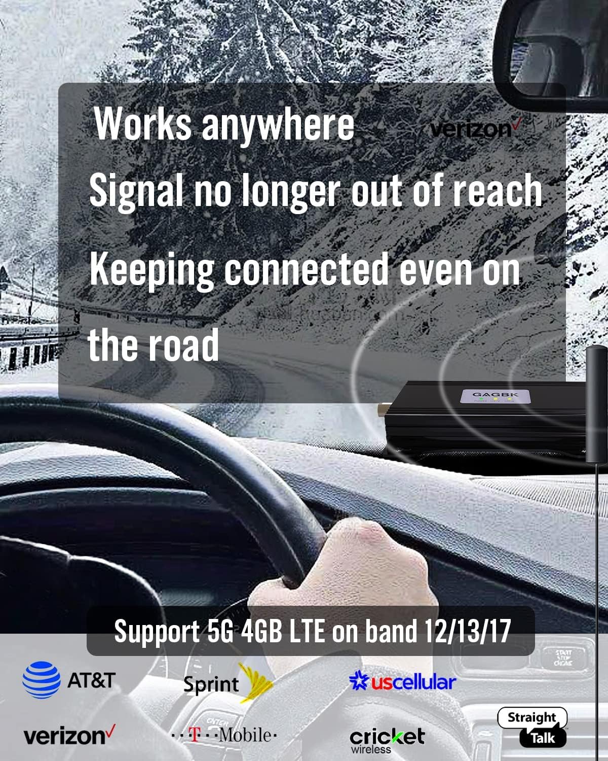 Car Cell Signal Booster: Cell phone booster for rv work with all U. S. Carriers; Verizon, AT&T, T-Mobile, Sprint, Straight Talk, Cricket, U. S. Cellular etc. car signal booster provide best performance for enhancing 4G LTE 5G on Band 12/13/17, for less drop call In emergency, fast data transfer, keeping GPS going and connected on the road, signal no longer out of reach. Note: Please check band of your cell phone before buying and the signal booster can only amplify signal, can not create signal.