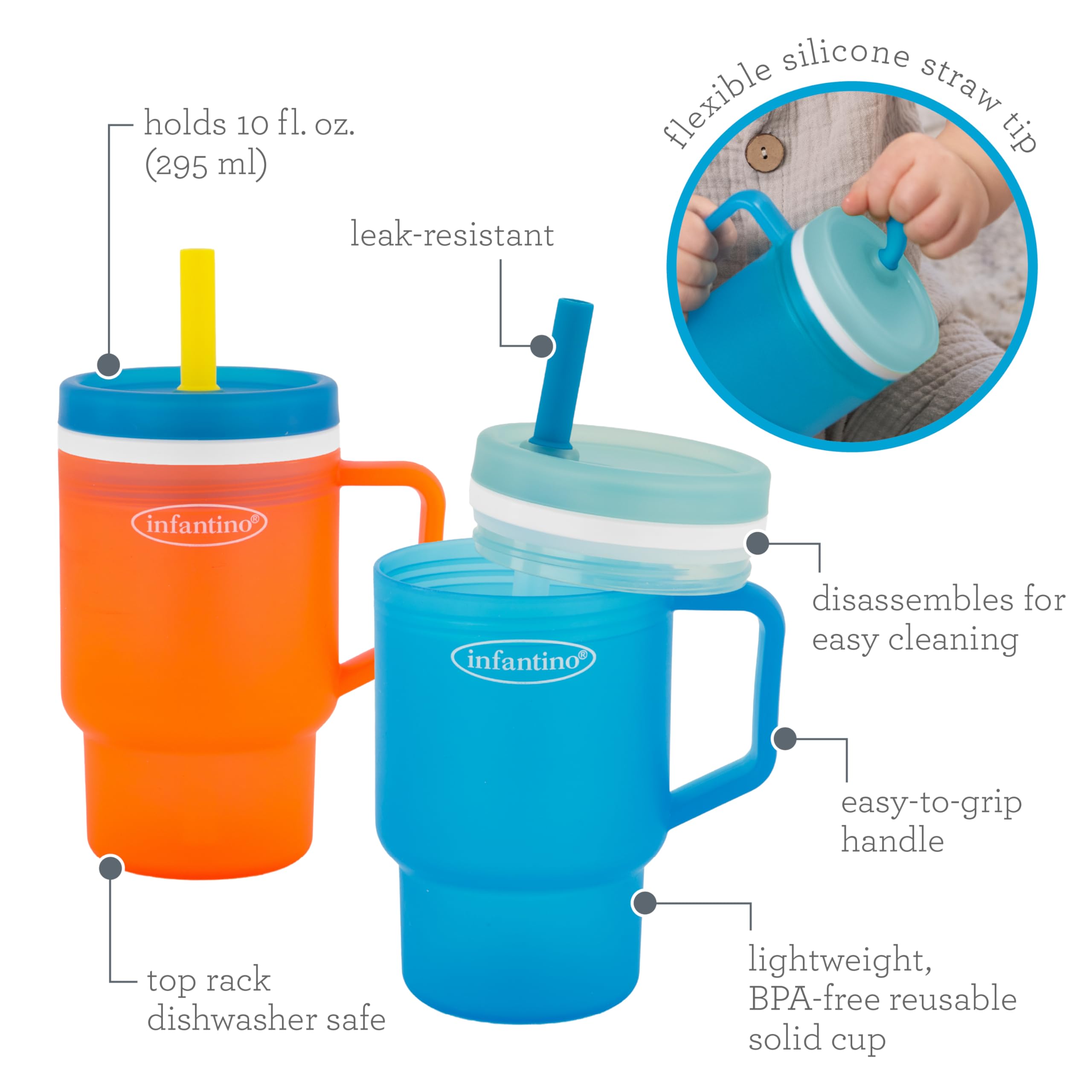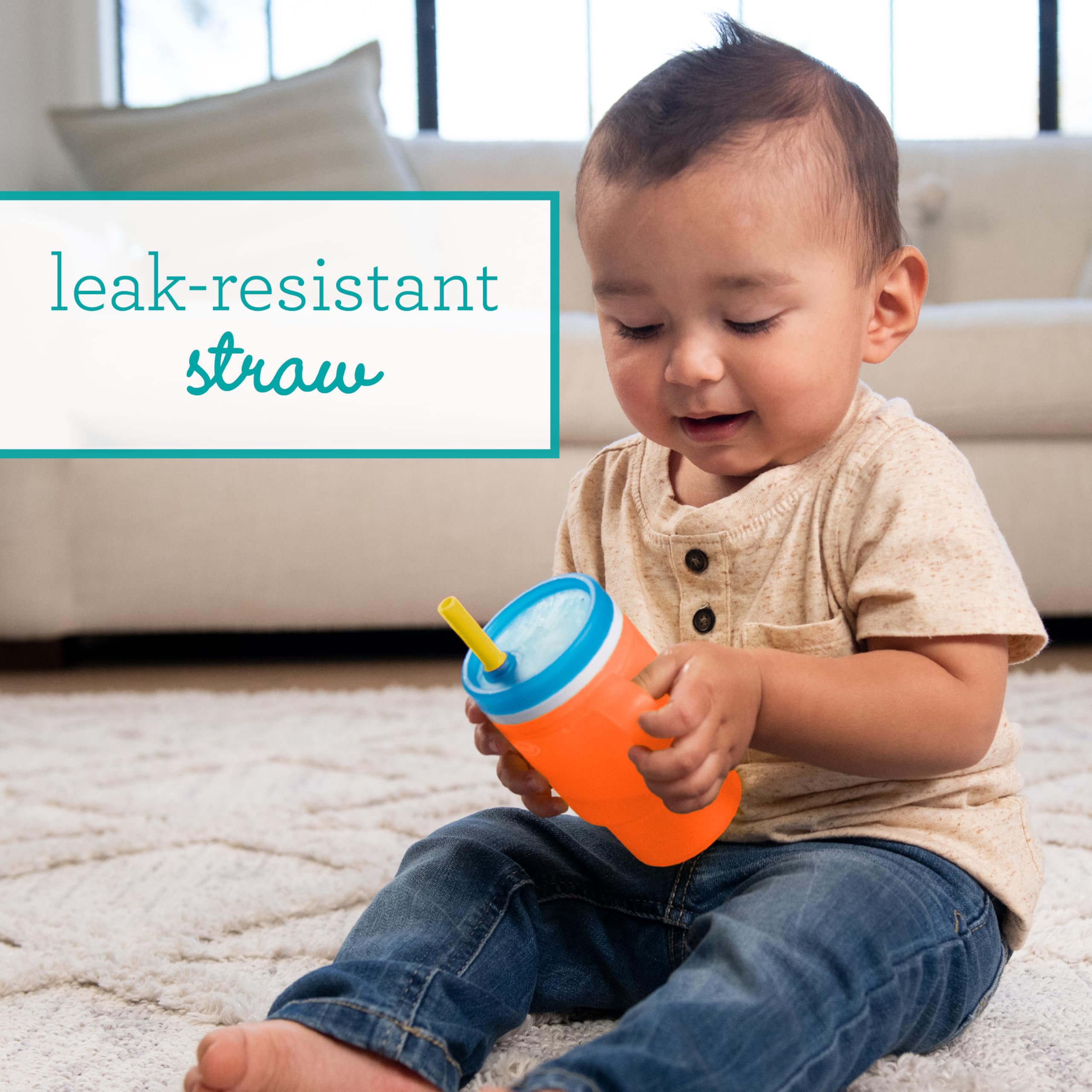 LEAK-RESISTANT STRAW DESIGN: The built-in straw features a soft silicone tip and a smart valve to help control flow and reduce spills — even when the cup is flipped upside down. Straw is no-pull for baby and easy to remove for cleaning