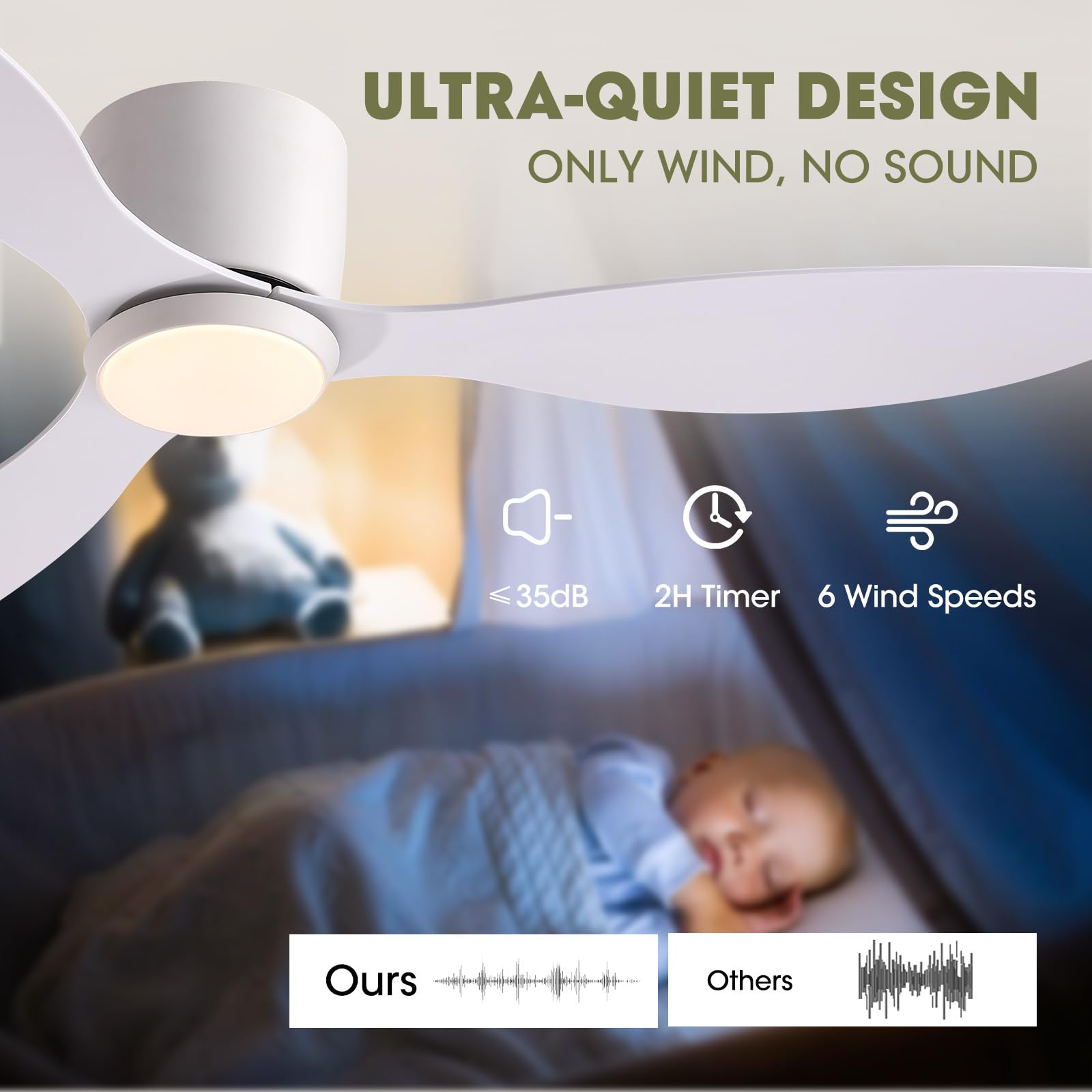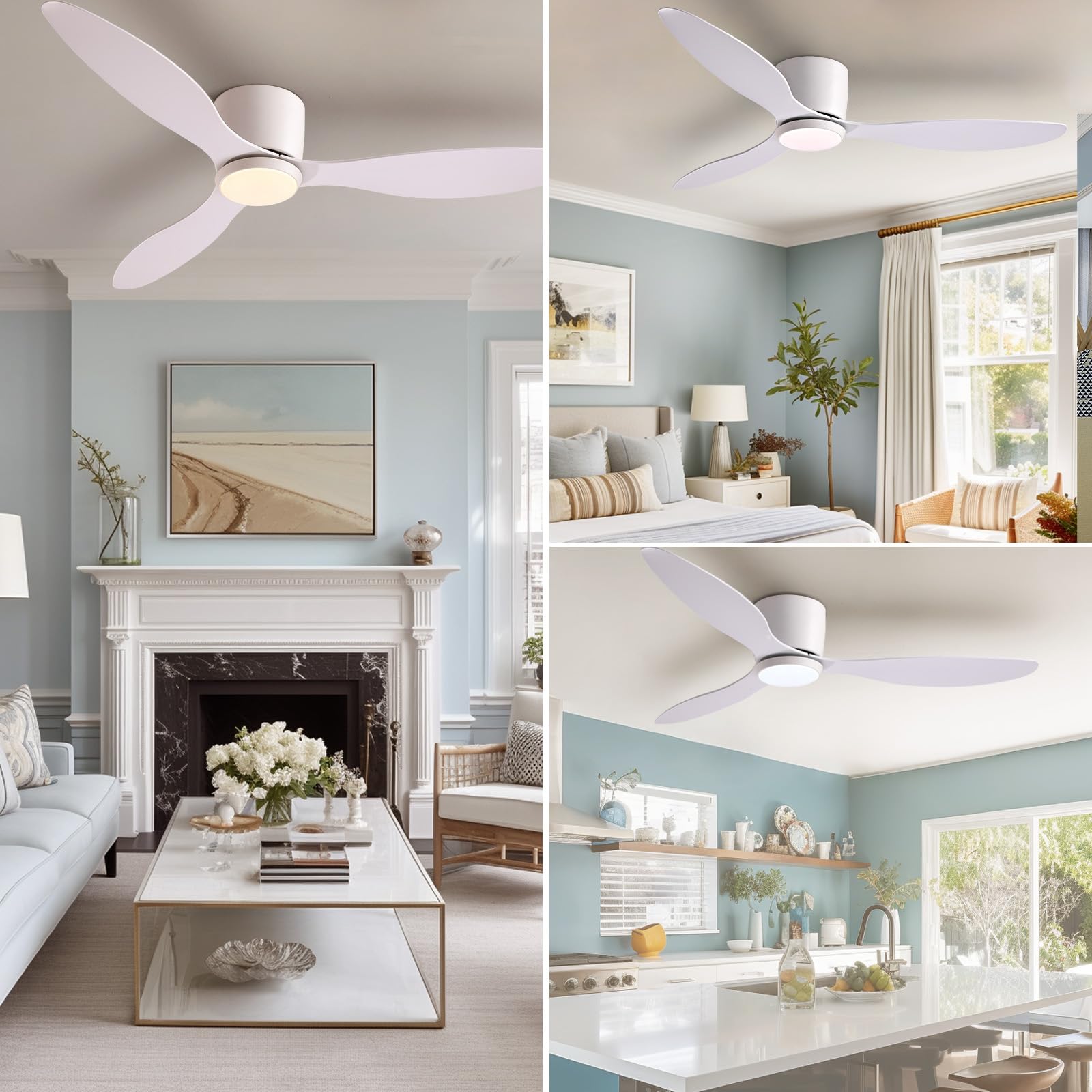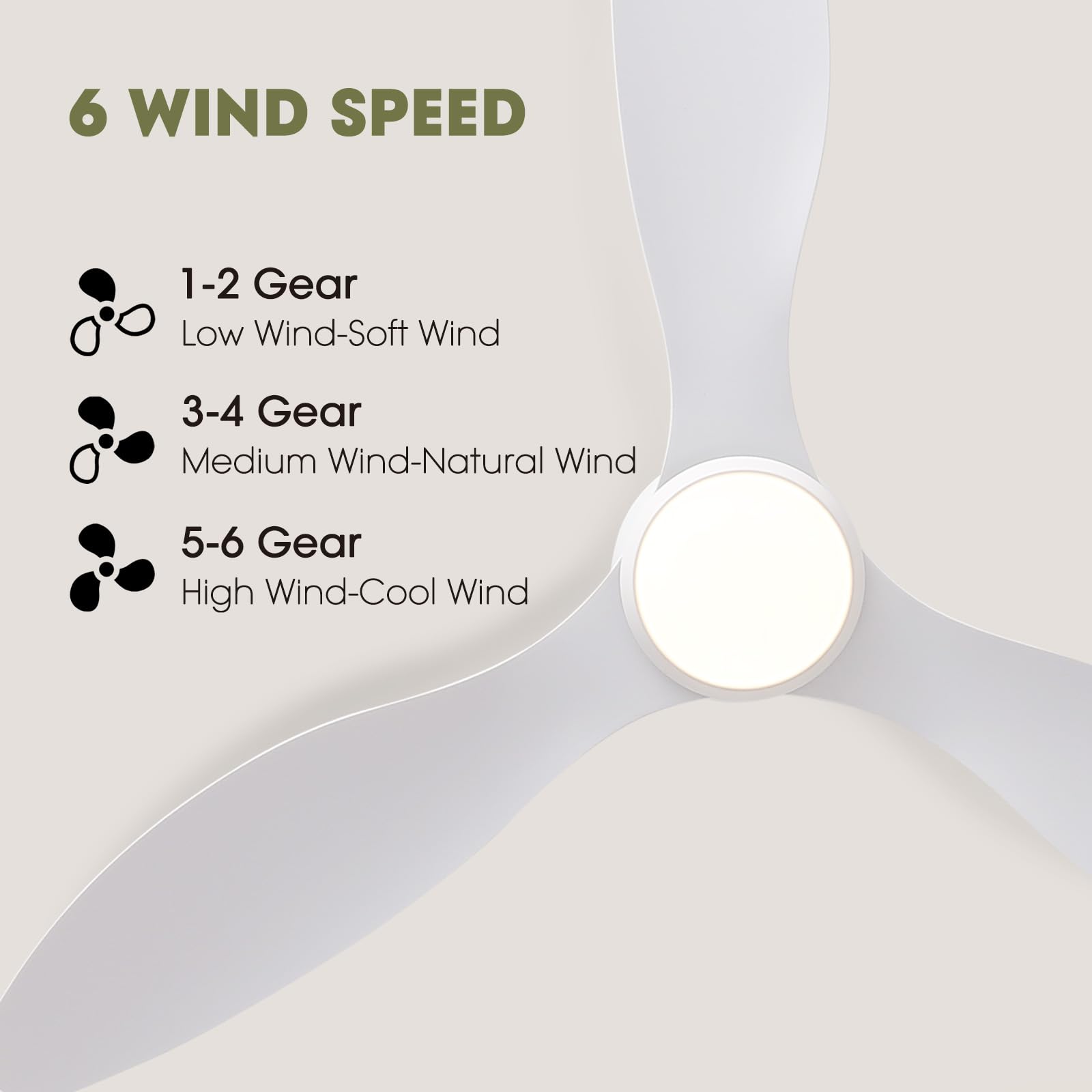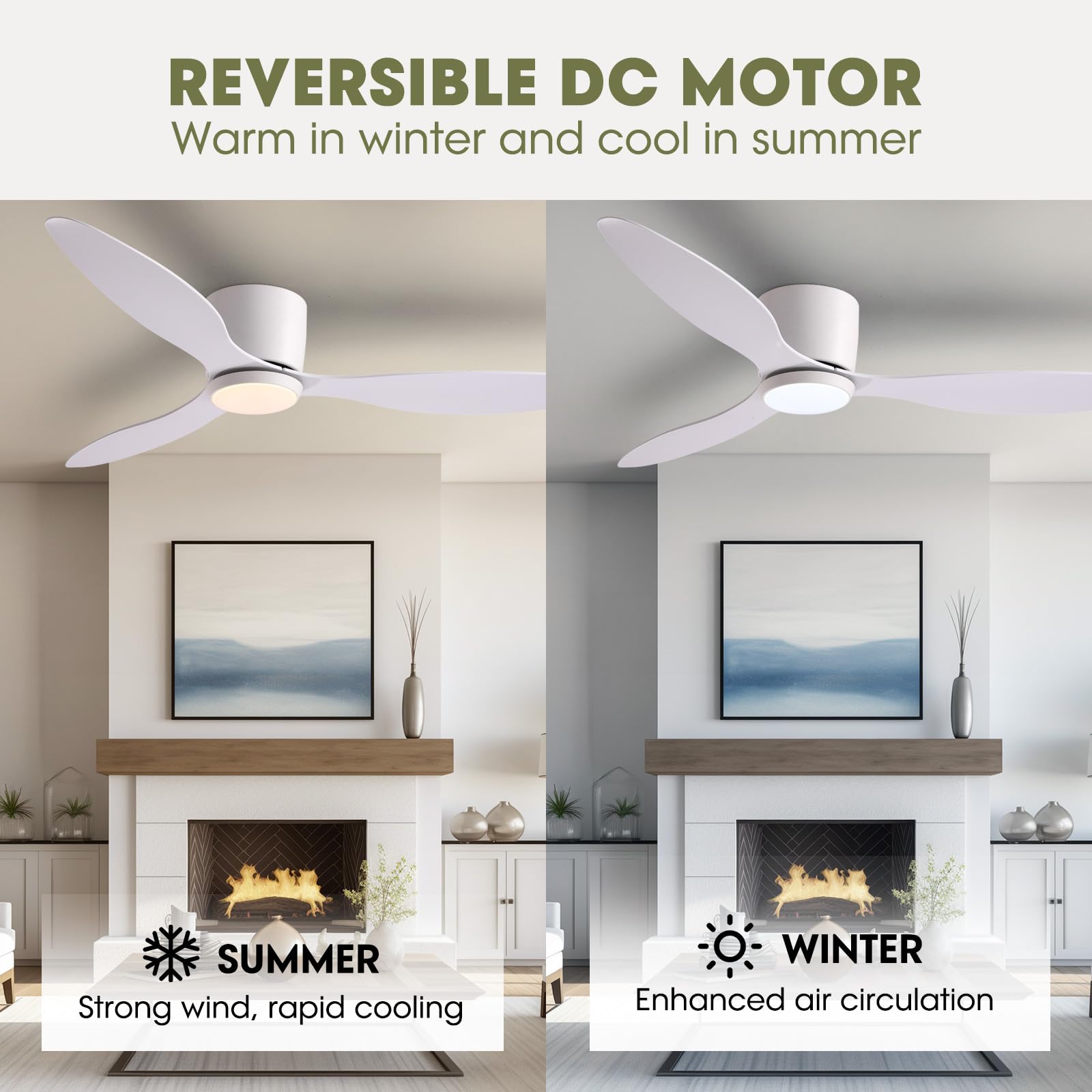 【Quiet Reversible DC Motor】Enjoy a comfortable night's sleep and a peaceful living environment with this ceiling fans. With a noise level of just 35 decibels, it runs like the rustling of leaves. The high-quality, high speed motor provides a perfect airflow experience. The remote control fan has a reverse airflow function that allows you to change the direction of the fan according to the season, providing a cooling effect in summer and distributing warm air in winter.