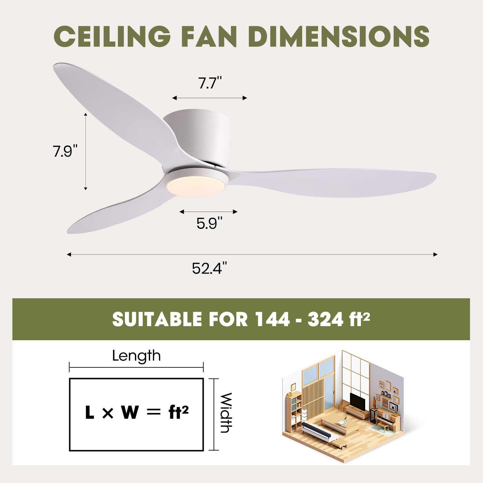 【Modern Ceiling Fan】This ceiling fan with light improves the quality of your space and adds a touch of style. The matte black ABS fan blades, acrylic cover, and flicker-free LED light source create a soft and pleasant atmosphere. The sleek design complements a variety of room styles. It is suitable for rooms measuring approximately 144-324 square feet and is ideal for bedrooms, living rooms, indoor kitchens, offices, and outdoor patios.