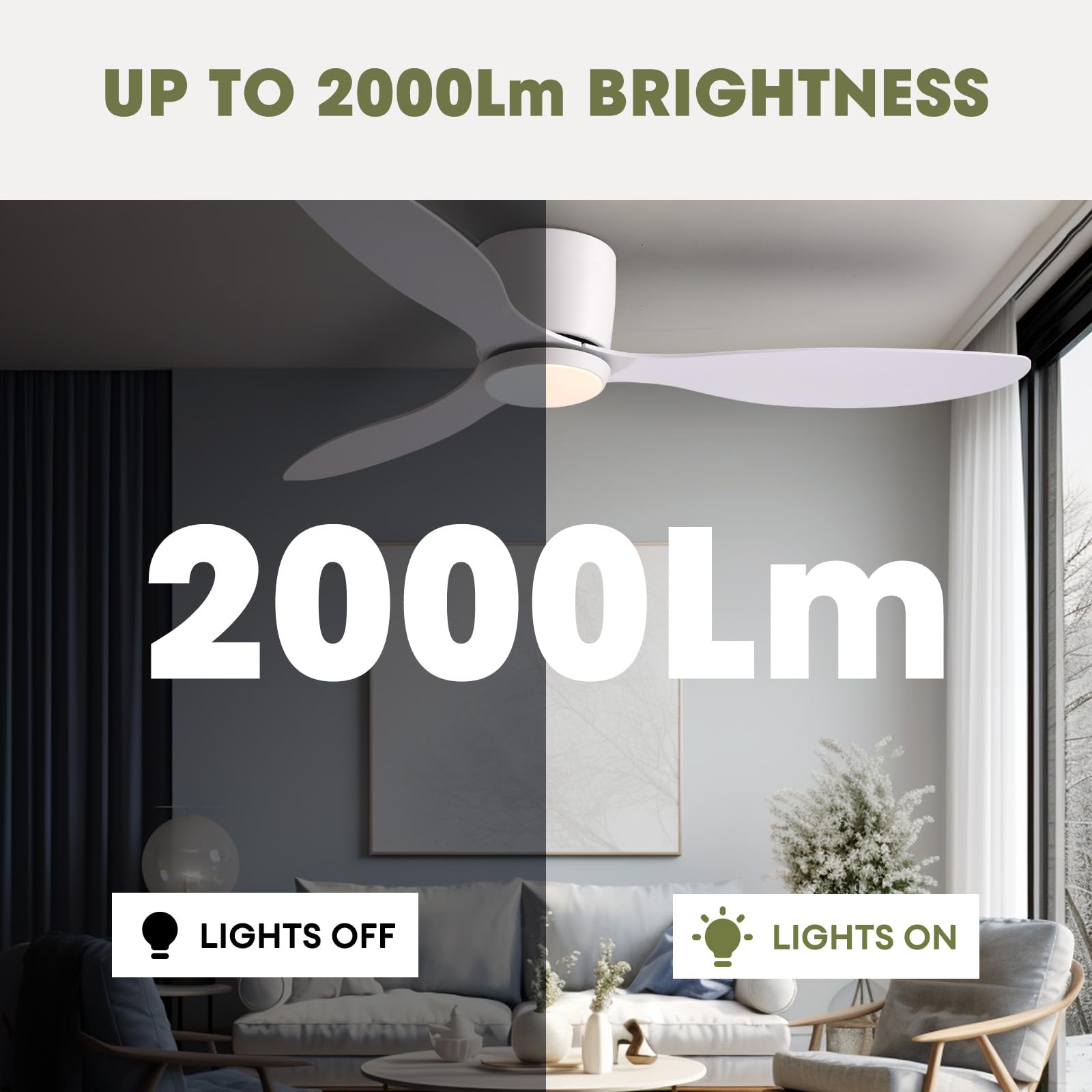 【Energy Savings with 2000LM Bulbs】Improve your environment with 2000 lumen bulbs and a quiet DC motor. DC motor black ceiling fan with light are usually 75% more energy-efficient than AC fans, resulting in a significant reduction in electricity usage. Additionally, the fan has a night light mode for added convenience.