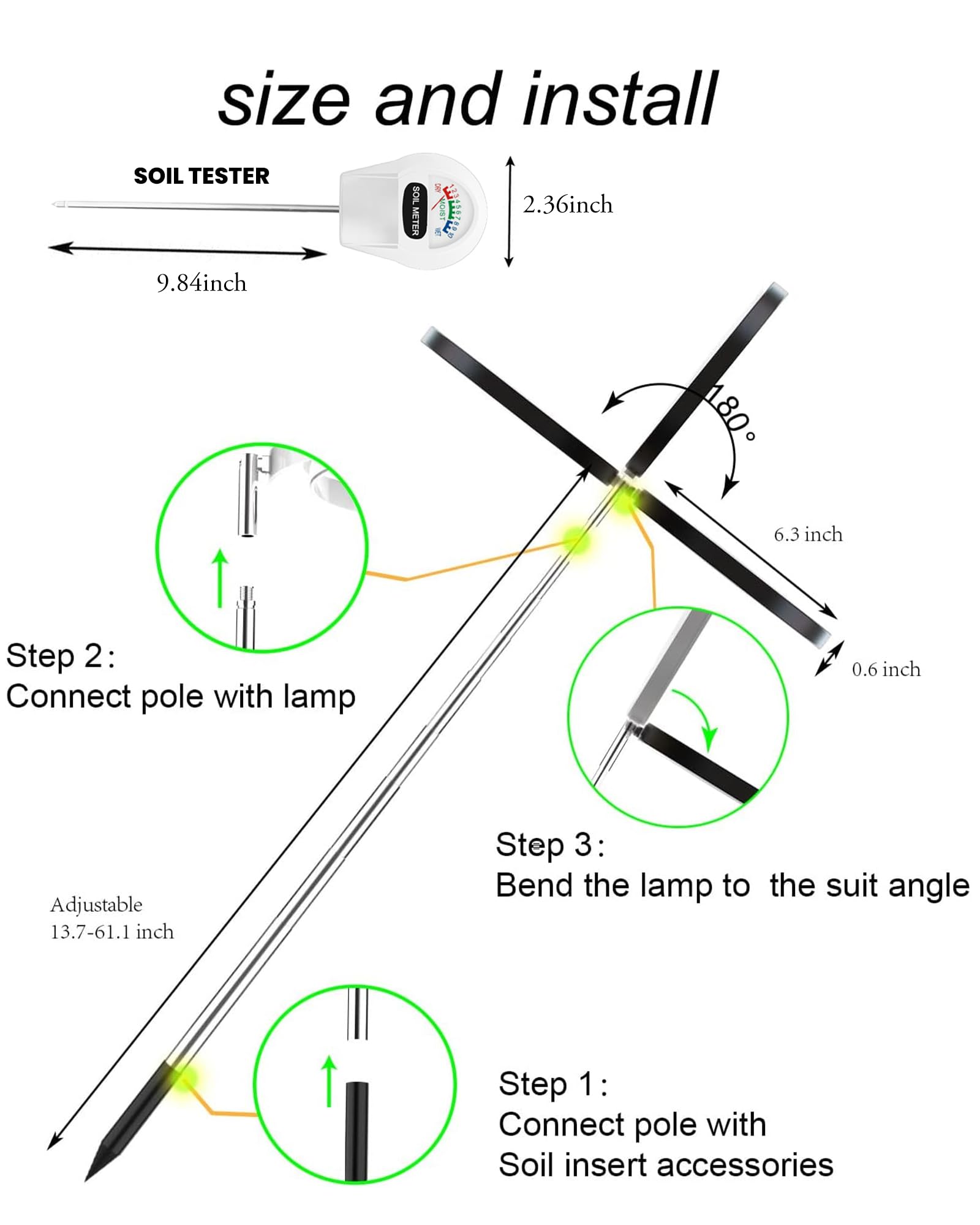 Height Adjustable Up to 61.1" - The height range is 13.7"-61.1", The pole does telescope up and down as well which is handy it can grow the plant to stay at a reasonable height,also it will cover a pretty larger space to shine light on more plants in close proximity when it is fully extended.