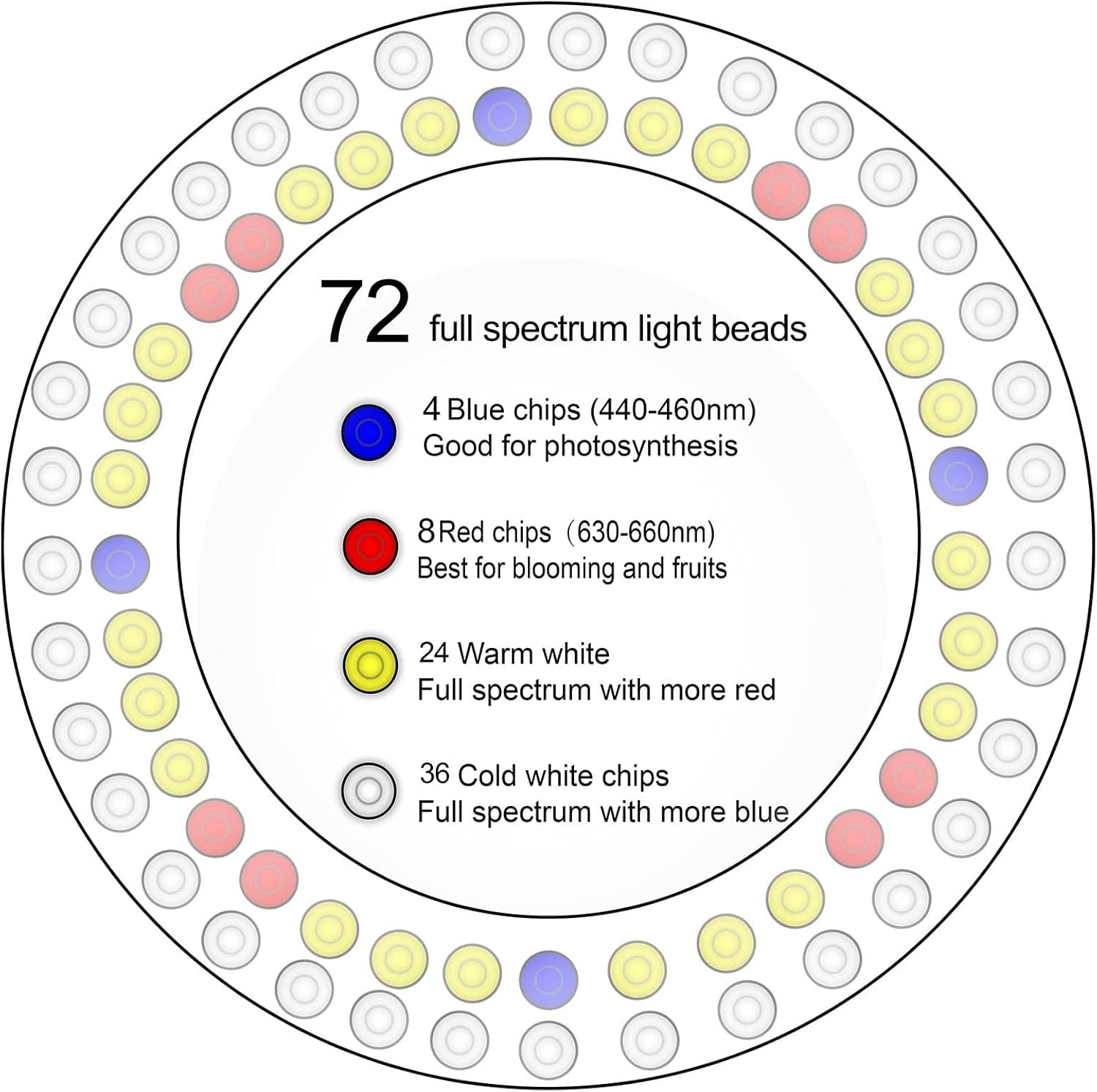 Designed For Large Plant LED Grow Light Full Spectrum - Compact grow light with high quality super bright LEDs, offer full spectrum 380nm-800nm, including white5000K/18 LEDS,warm white 3000K/18 LEDS,red/8 LEDS,blue/4 LEDS to effectively promote indoor plant growth any time of year, beneficial to entire growth period.