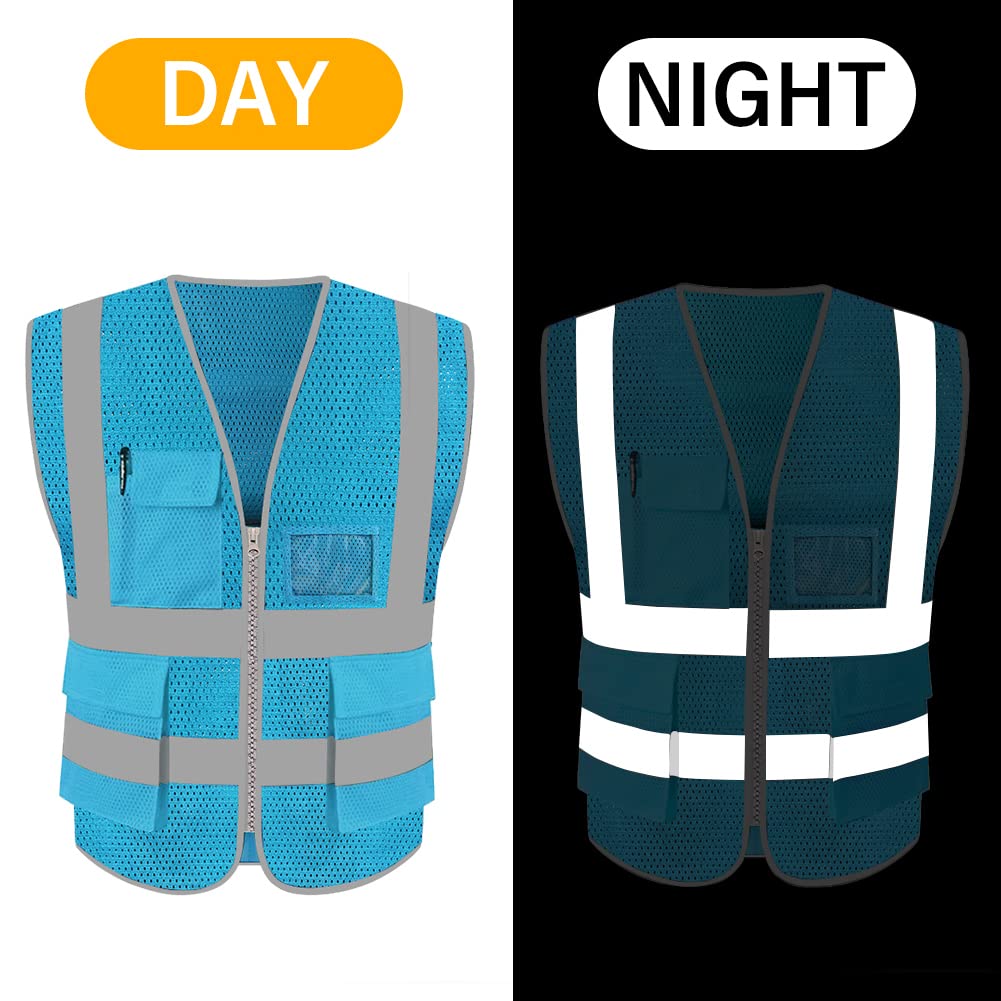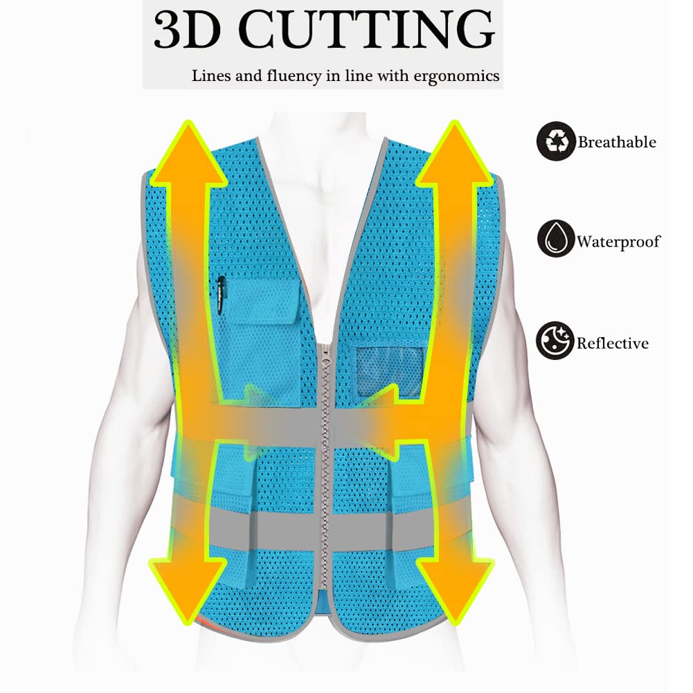 ✔ Multi-function Pockets: High visibility safety vests designed with 5 front pockets with zipper magic poster clamshell closure, 2 large pockets, 1 PVC transparent ID badge holder, 1 flap pocket and 1 pouch holder for flashlight, laser pointer.