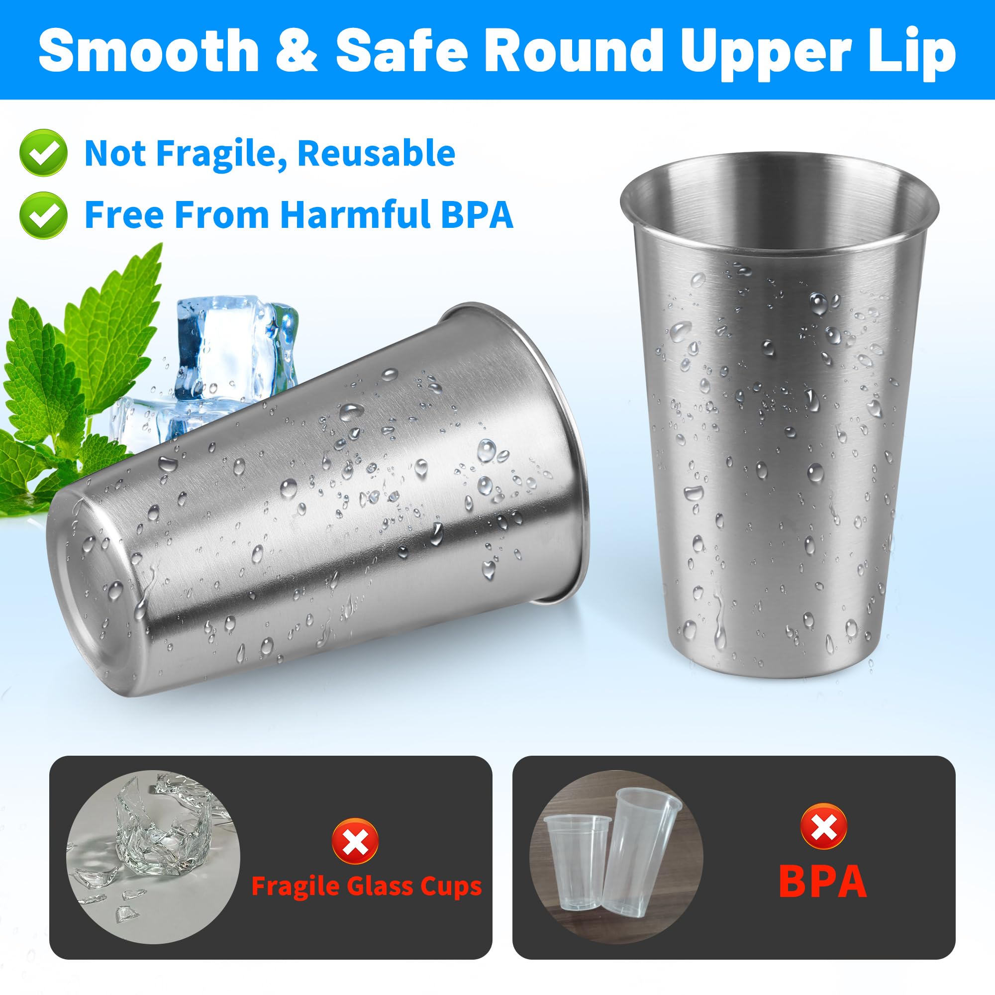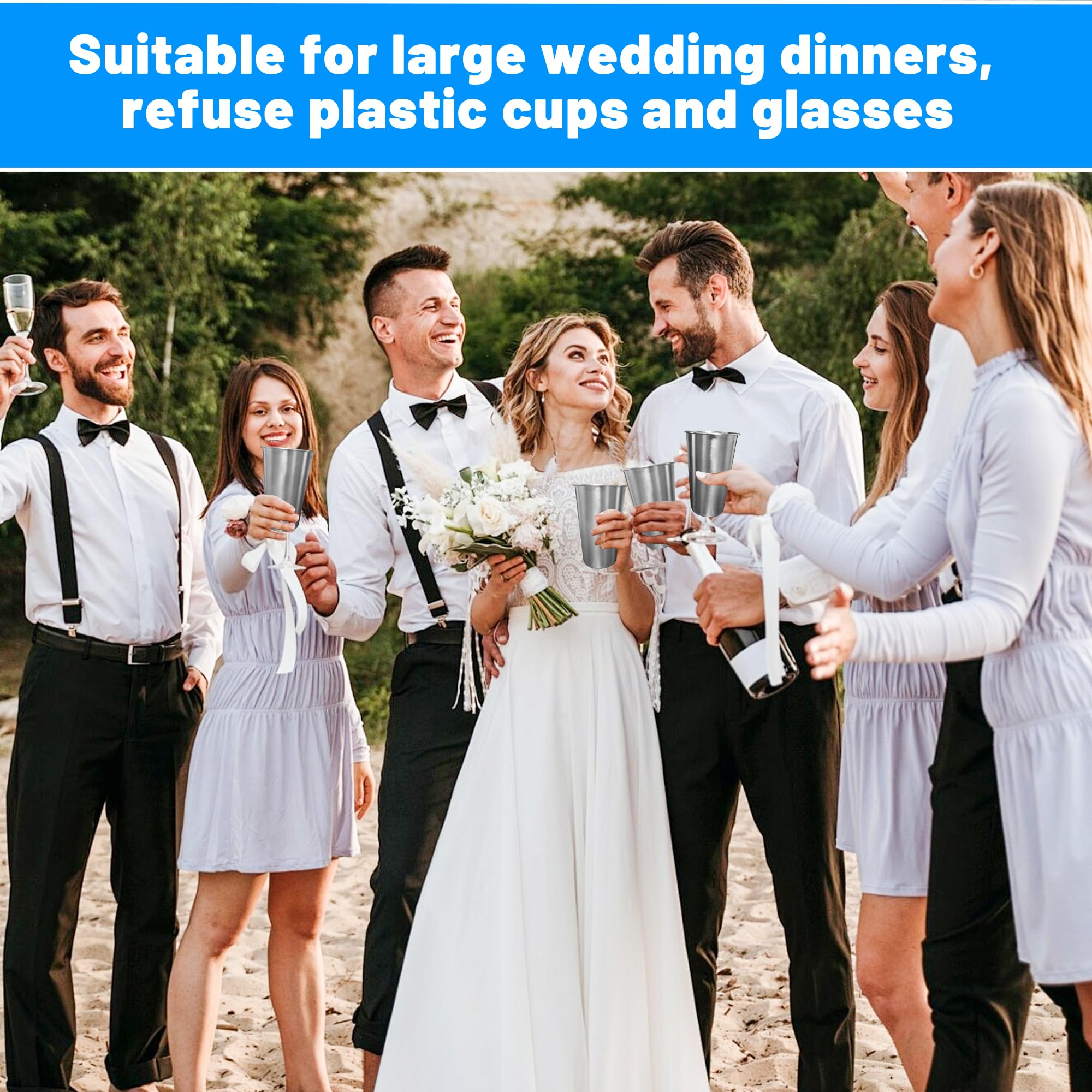 4.These stainless steel cups are suitable for holding coffee, soda, milk, iced tea, water, juice, lemonade, ice cream, beer, wine, champagne, yogurt and other drinks, you can use them for camping, tourism, picnic, bar, family, restaurant and more.