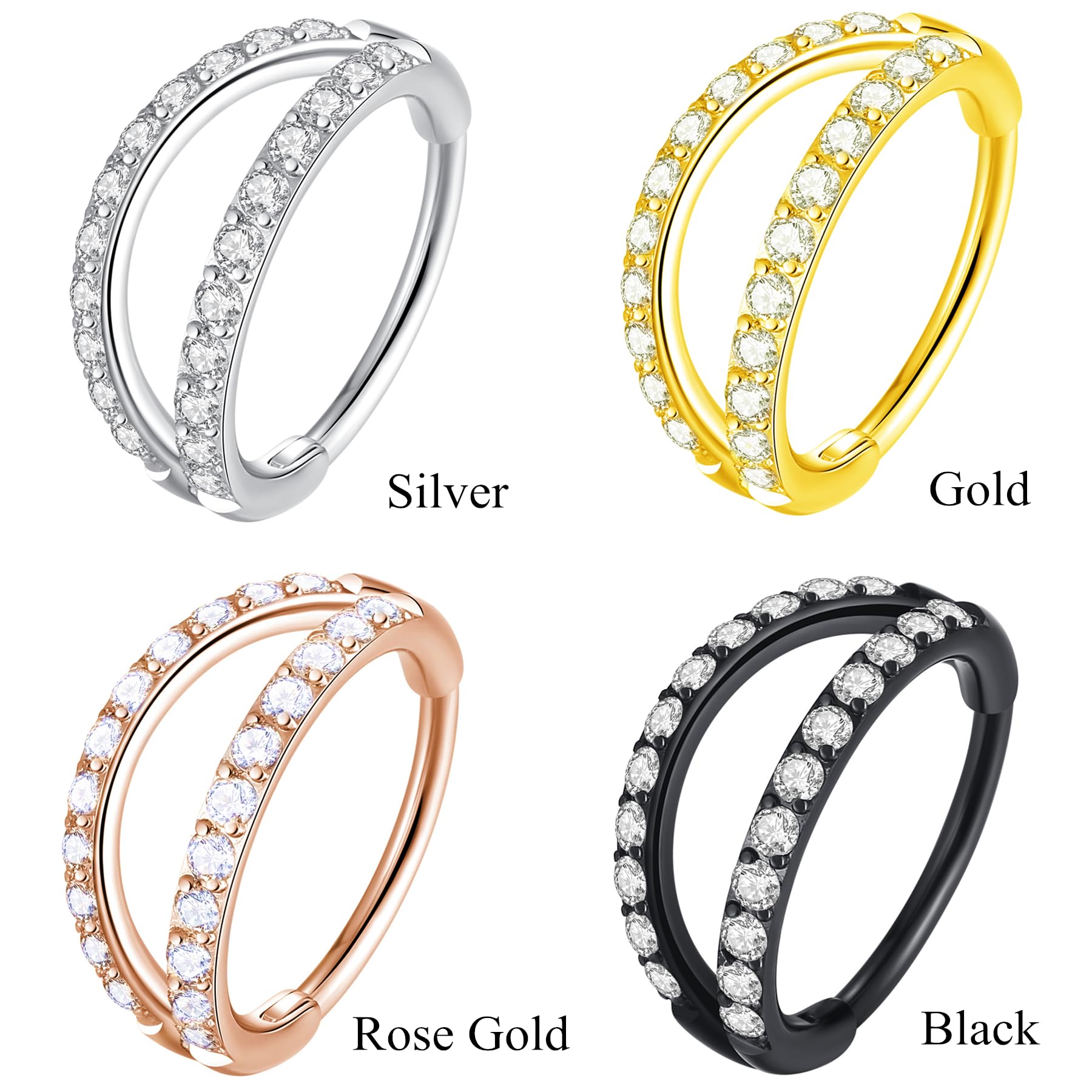 Suitable Piercings-Works perfectly in different sizes for several piercing locations: Conch,Tragus, Earlobe, Cartilage, Helix, Rook, Daith, Nose, Septum...Double CZ Nose Ring/Nostril Hoop/Septum Ring/Hinged Clicker Hoop/Surgical Steel CZ Double Nostril Ring/ Hinged Nose Hoop/ Shine Nose Clicker/ Steel Nostril Jewelry/Double Hoop Nose Ring/Cartilage Hoop/Conch Earring/Daith Ring/Tragus Jewelry/Helix Hoop/Rose Gold Cartilage Earring/Hoop Earring/Earlobe/Nose Piercing.