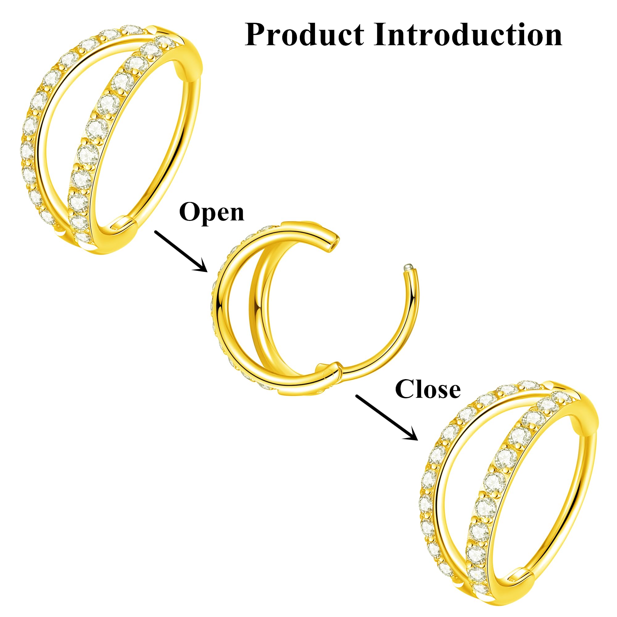 Material: Made of 316L surgical steel High Polished smooth surface, without any sharp edges. Nickel&lead free. AAAAA+ Cubic Zirconia: multiangle cutting surface allows the CZ to reflect light in all directions, shining charming all the time. It also features a non-removable hinged segment that makes it super easy to insert and remove.