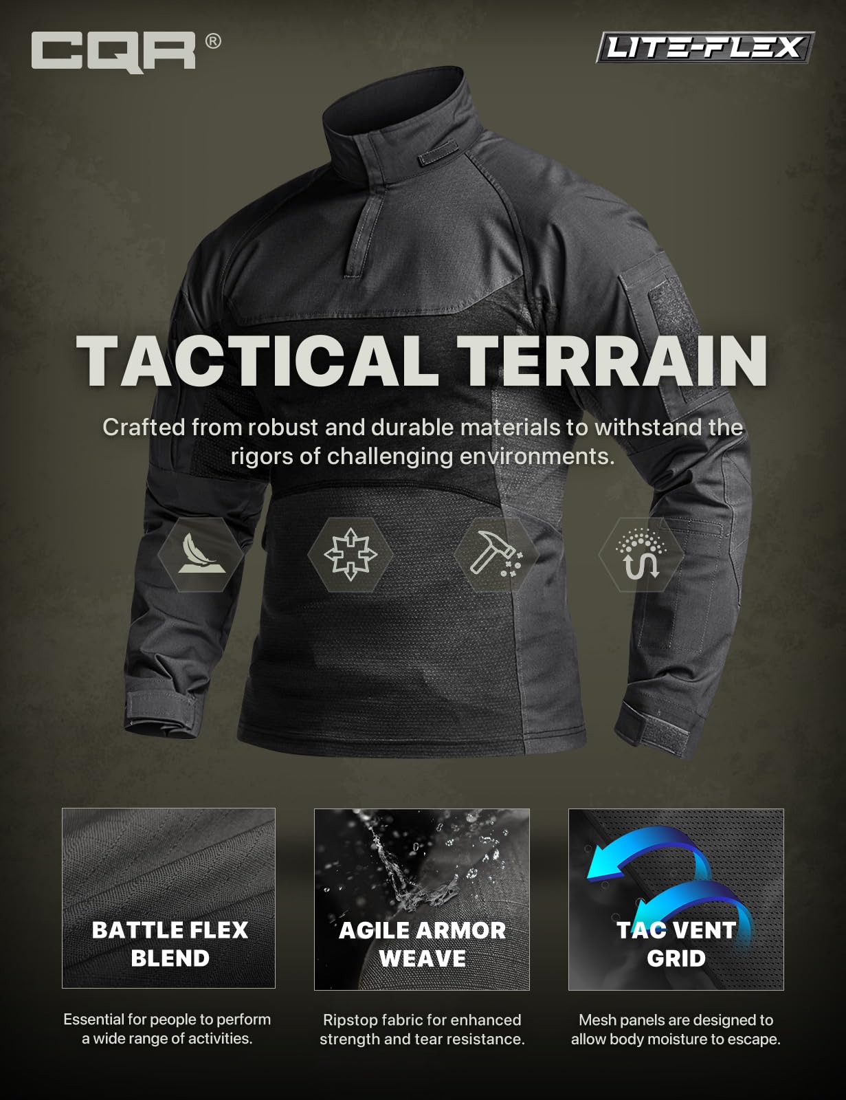 Tactical Combat Shirt for Training and Field Use: Built for range sessions, outdoor training, airsoft, paintball, shooting, hiking, and active field movement, this CQR combat shirt delivers a streamlined tactical fit with dependable all day comfort.