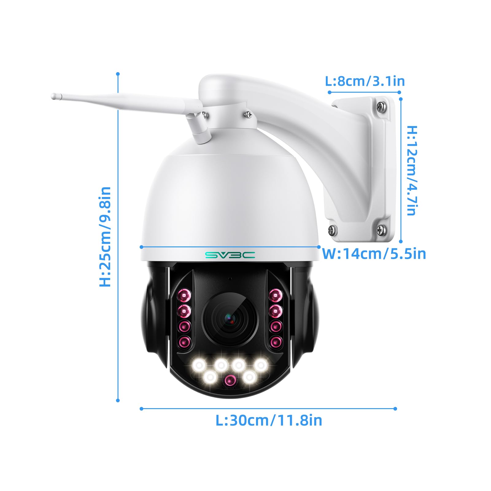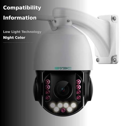 【Color Night Vision】: SV3C 5MP PTZ Outdoor Security Camera features dual-mode night vision with 9 array infrared lights and 6 LED lights, offering full-color vision up to 130ft and black & white vision up to 260ft since May 31, 2024. This PTZ WIFI camera is Perfect for monitoring large outdoor areas like driveways, backyards, and parking lots, this IP camera ensures clear 24/7 surveillance in complete darkness or low light. Ideal for enhanced home and property security.