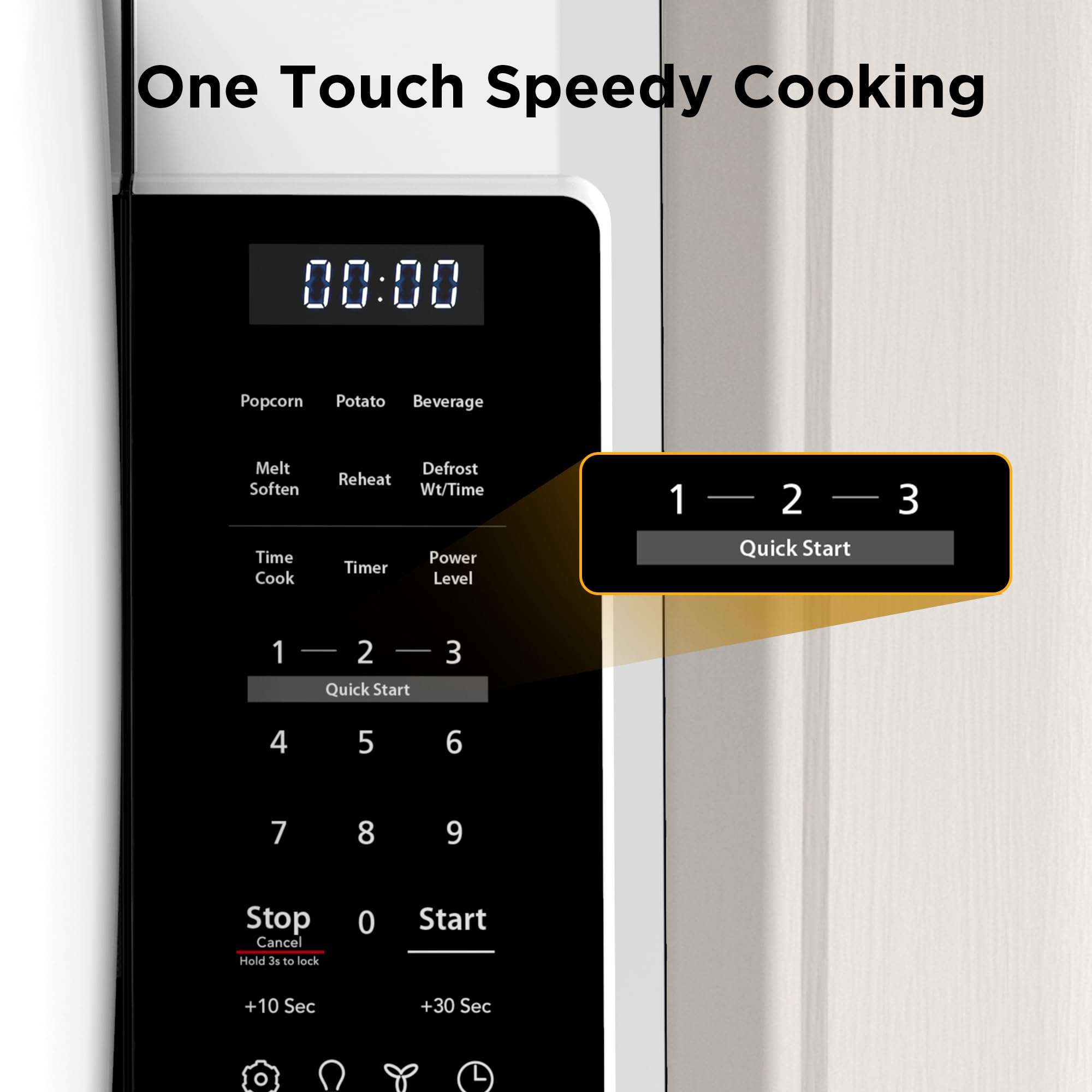 Speedy Cooking: For quick action, press numbers 1, 2, or 3 for using the 100% power level at 1-3 minutes.