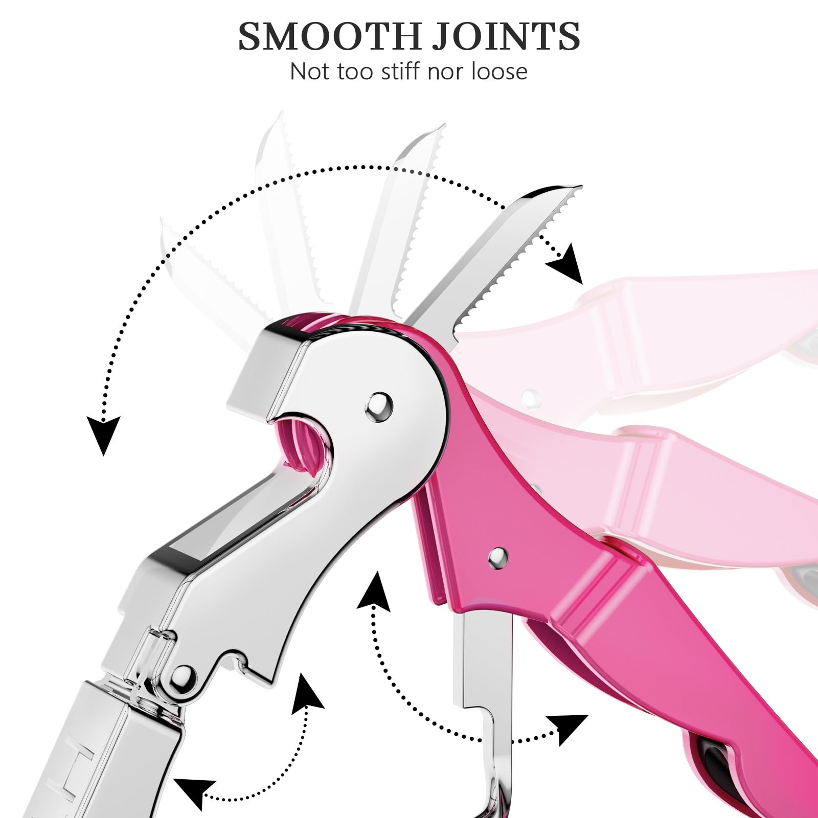 MULTITOOL WINE OPENER: Made from 420 stainless steel and featuring a durable zinc alloy handle. It includes a classical double-hinged design that helps you pull the cork from the bottle with no effort. Featuring a built-in foil cutter and bottle cap opener, everything you need to open a bottle of wine or beer is conveniently and easily available to you in one tool