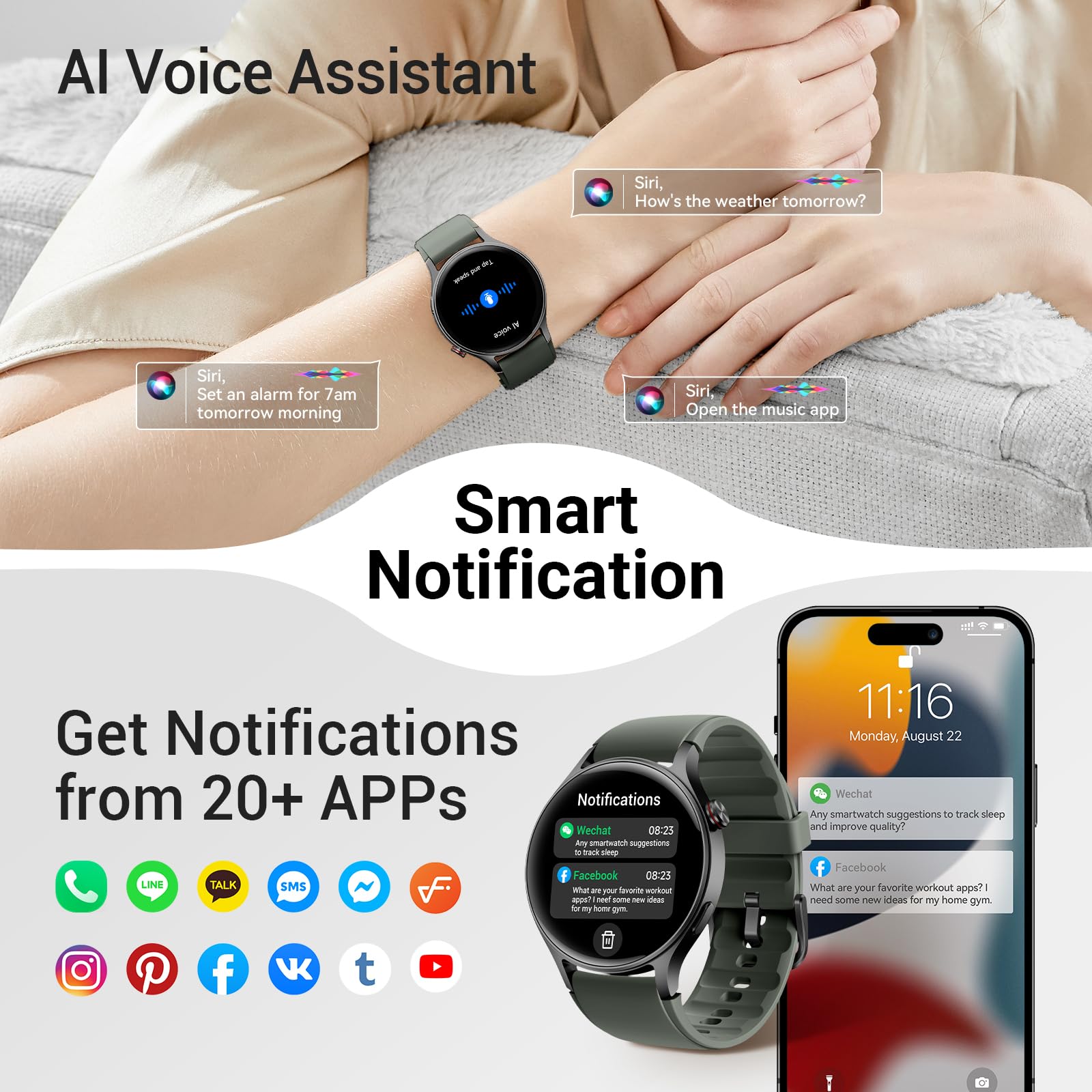 【Stay Connected on the Go】Enjoy a 1.3-inch AMOLED touch screen with always-on display mode and customizable watch faces. Get clear, vibrant visuals, whether indoors or outdoors. Effortlessly make and receive calls with the built-in Bluetooth connectivity, and stay updated with call, text, and app notifications right on your wrist