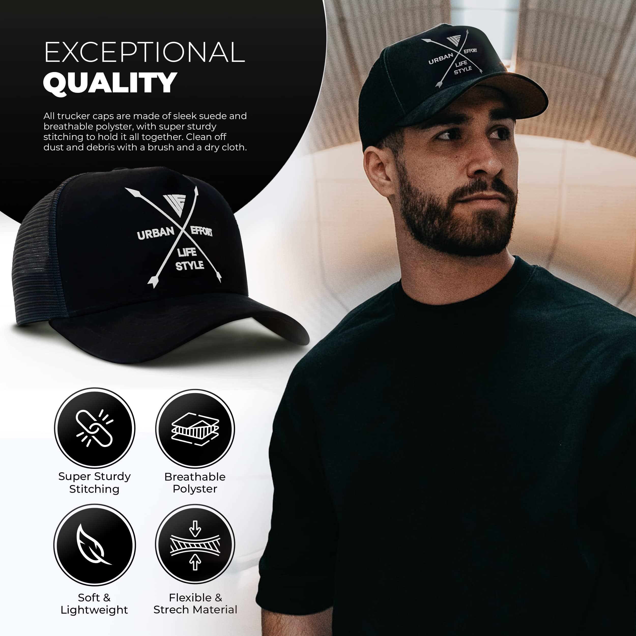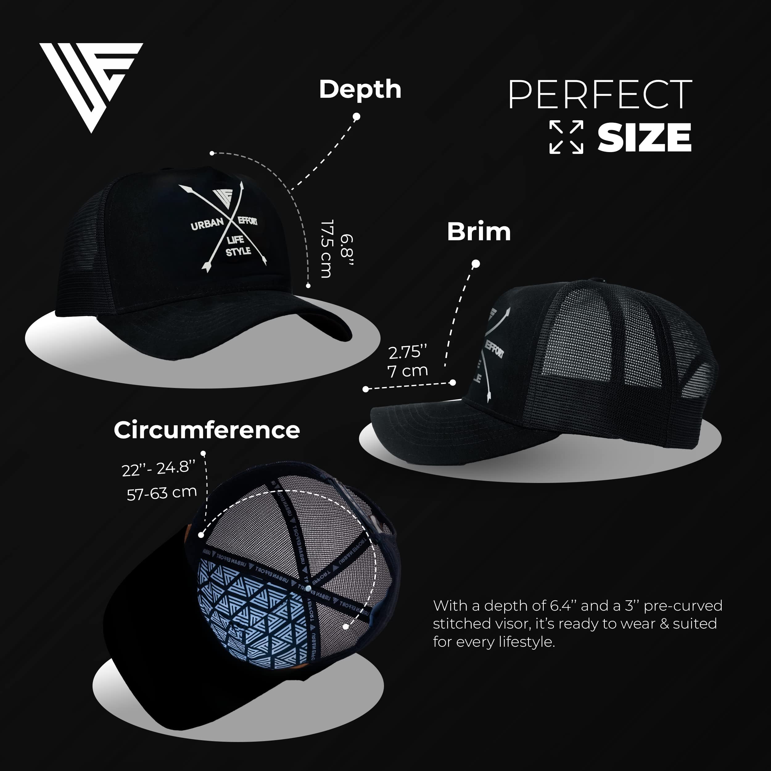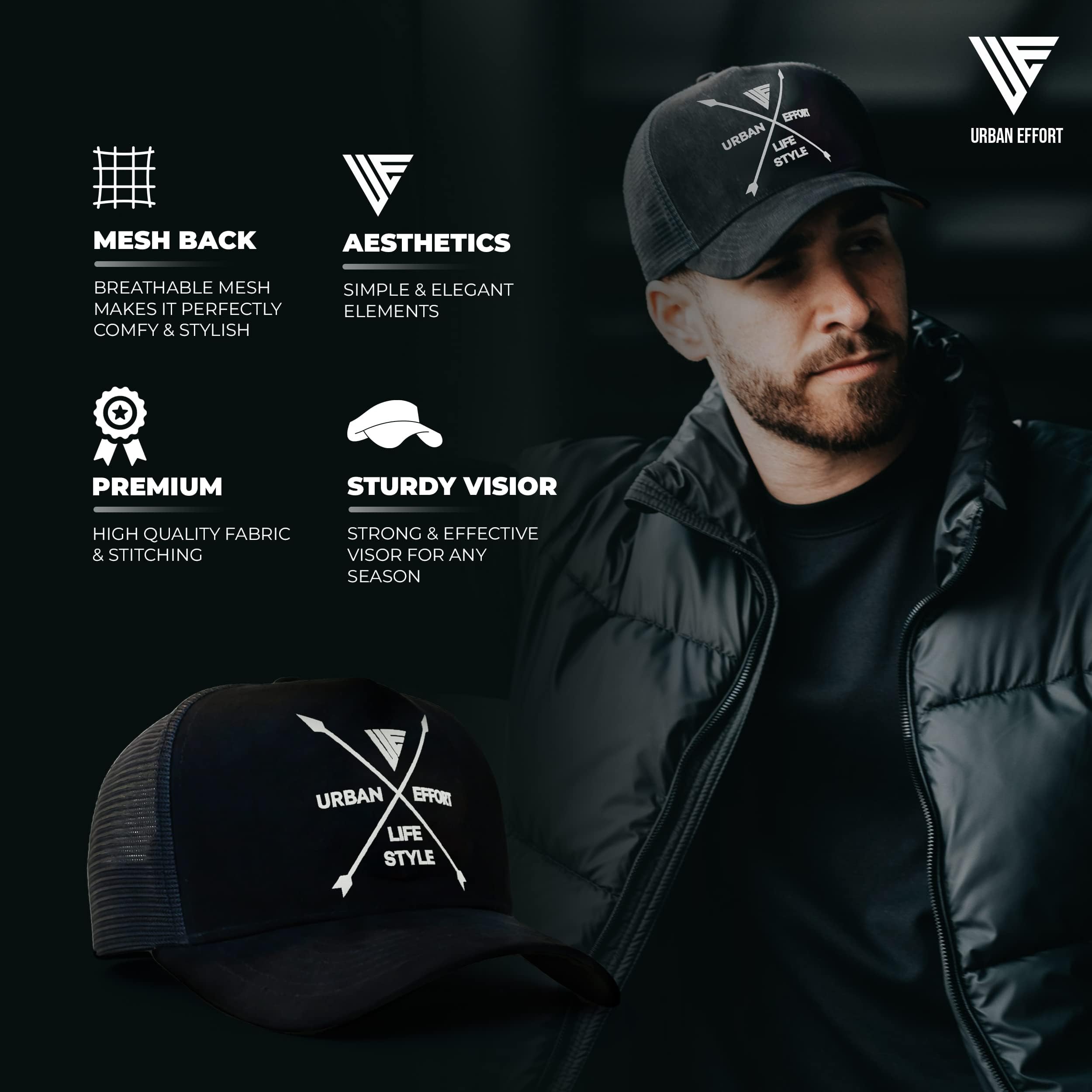 ✅Premium Quality: The Urban Effort women and man's cap is a true standout. It combines a premium combination of polyester mesh and suede fabric for comfort, along with intricate details that make it truly unique. With its exquisite craftsmanship, this cap is made to last. It's made of 100 percent polyester for durability and is a super comfortable, adjustable hat with a snapback.
