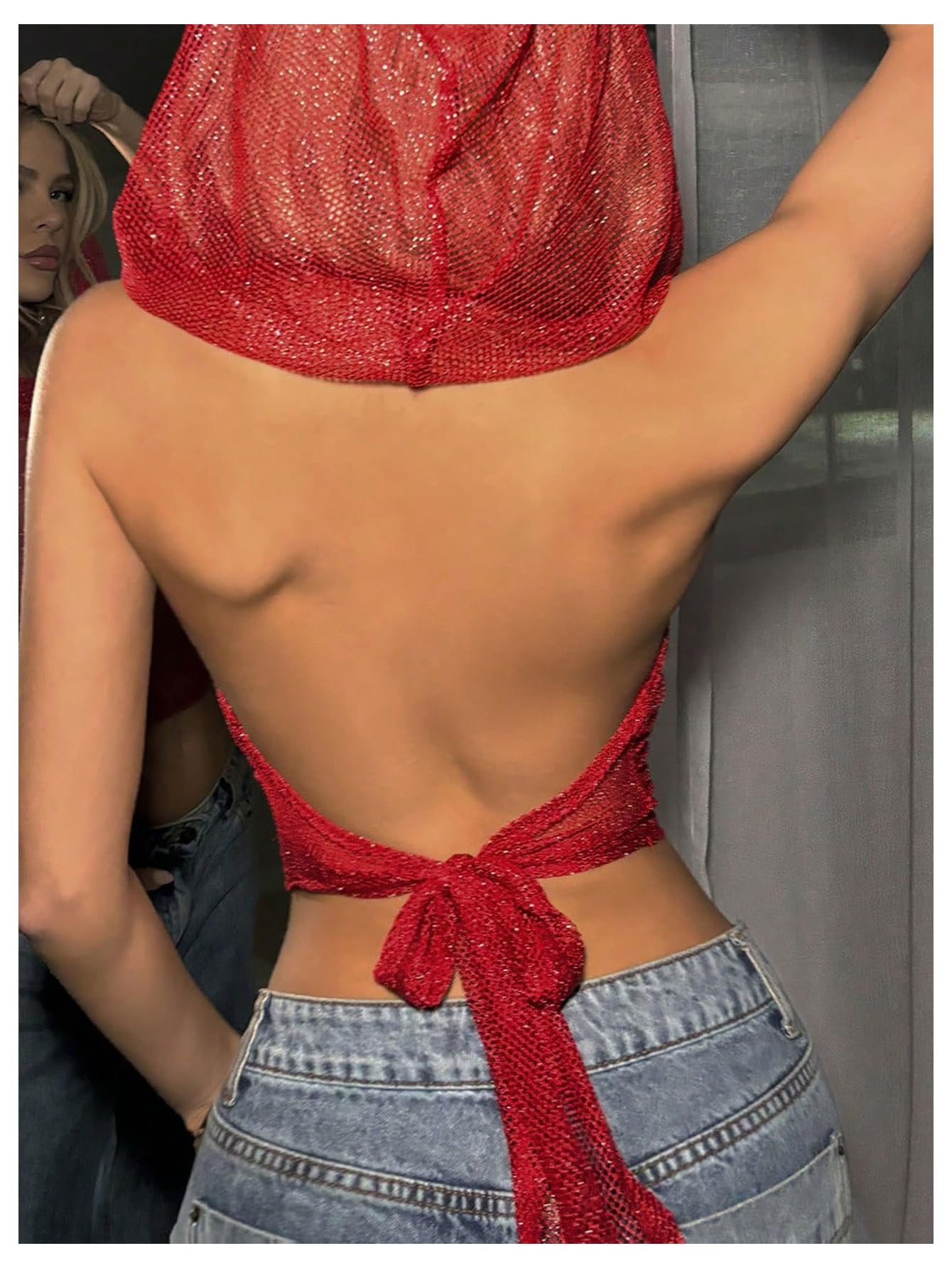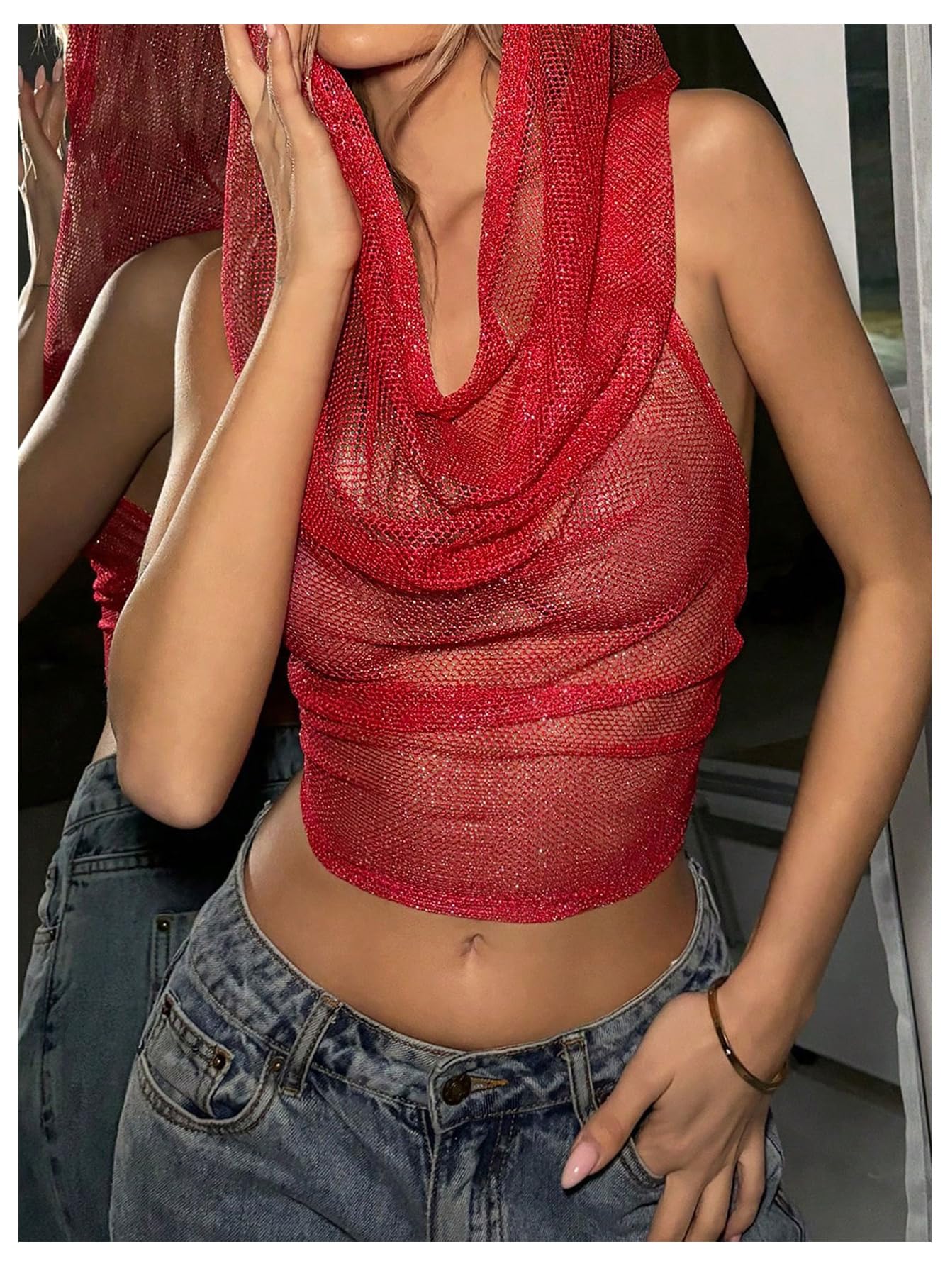 Feature: Sleeveless, solid color, tie backless, hooded halter neck, crop tank top