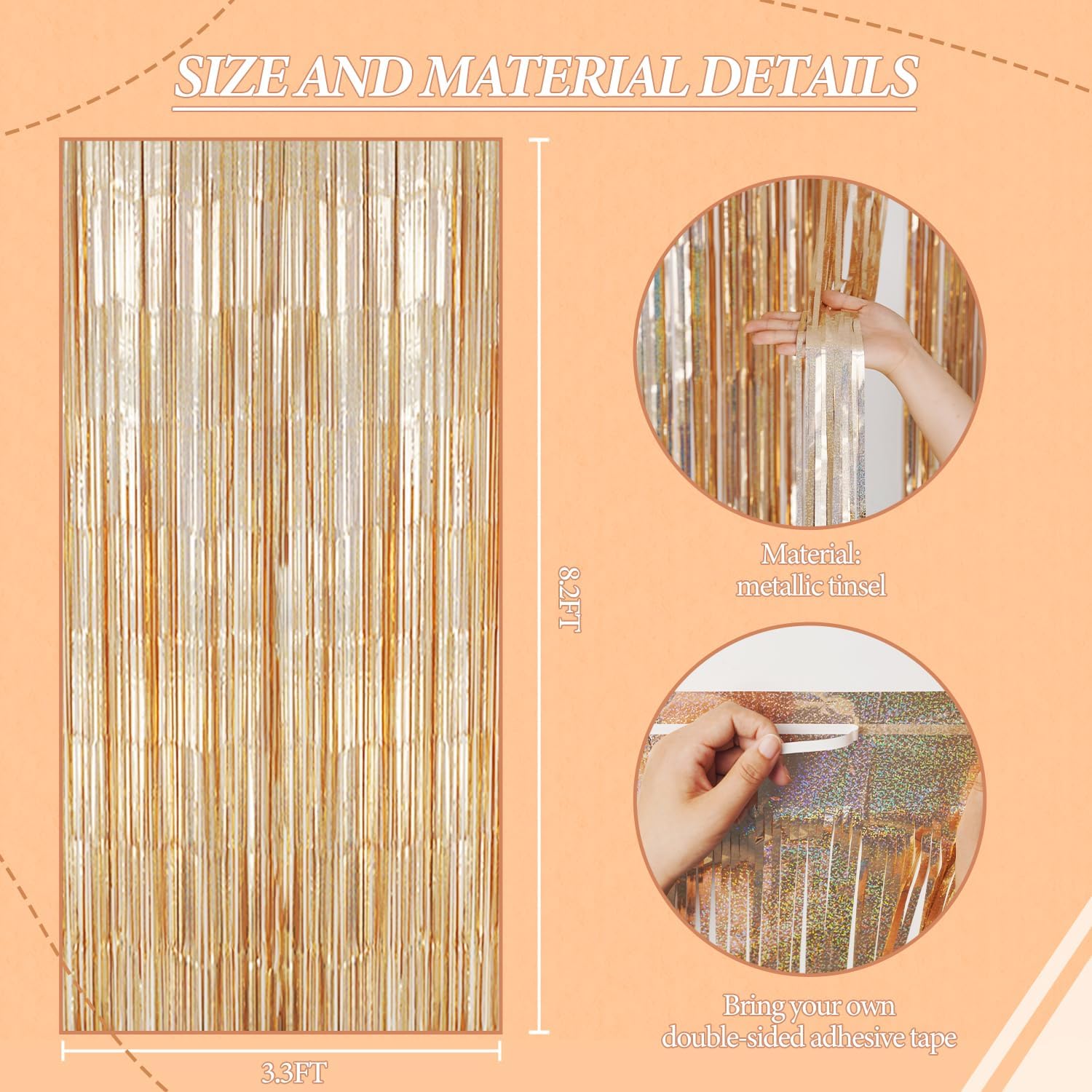 【3 Sets of Foil Fringe Curtains】Each package includes 3 sets of 3.3x8.2 ft foil fringe curtains, providing enough length to decorate your party with ease. Perfect for creating a stunning backdrop for any occasion.