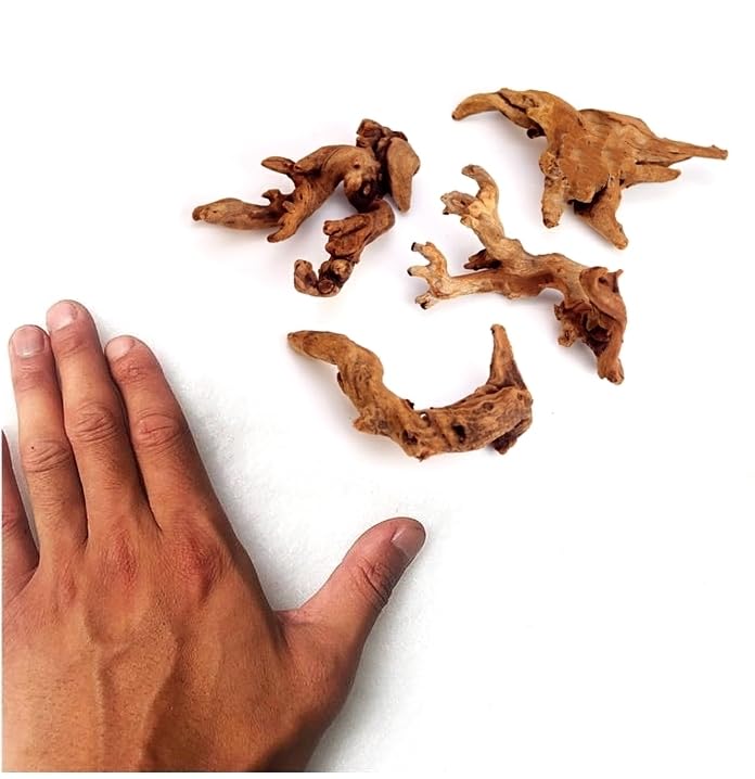 package include 4 pieces small driftwood for aquarium, each one is carefull selected, size is about 4-6inchs each piece of drift wood is unique. Pictures show only some of the driftwood, what you receive may be different from what is shown in the pictures. PRETREAT BEFORE USE : If the aquarium drift wood is placed in a fish tank, it must be boiled and soaked for one or even two weeks. After the tannic acid is completely released, place it in a fish tank. It can be directly used for reptile tanks. They can immediately add natural beauty to your fish tank wide use: those small driftwood pieces Not only can it be used to aquarium decor, but also can be driftwood decor for home. It can also be used as accessories for reptile aquariums, such as bearded dragon, spider, snake, lizard, snail, turtle, crab, frog, gecko, ball python and so on.