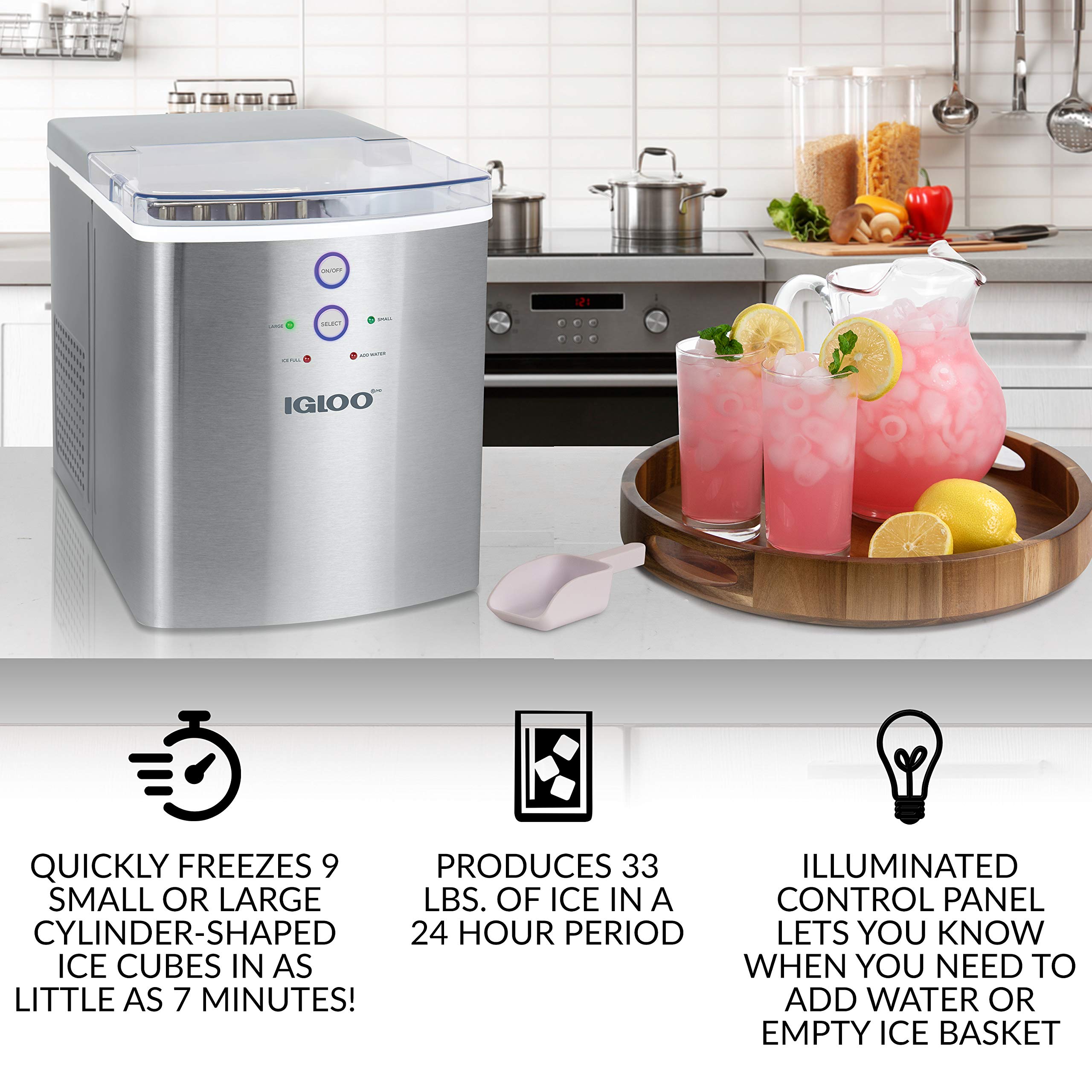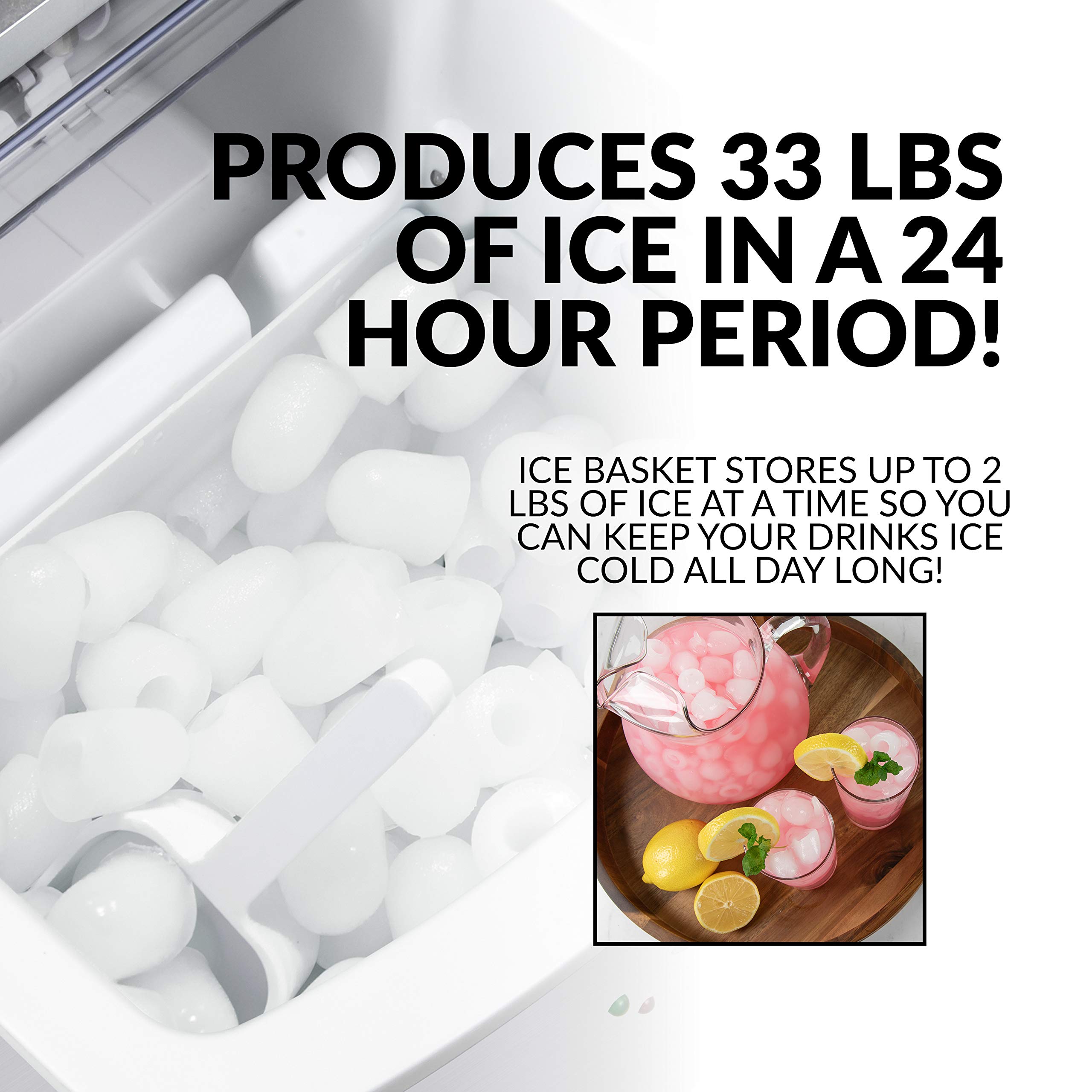 LARGE ICE-MAKING CAPACITY: Keep the 2.5-quart water tank filled and this unit will produce 33 pounds of ice in a 24 hour period - enough to keep drinks cold all day long