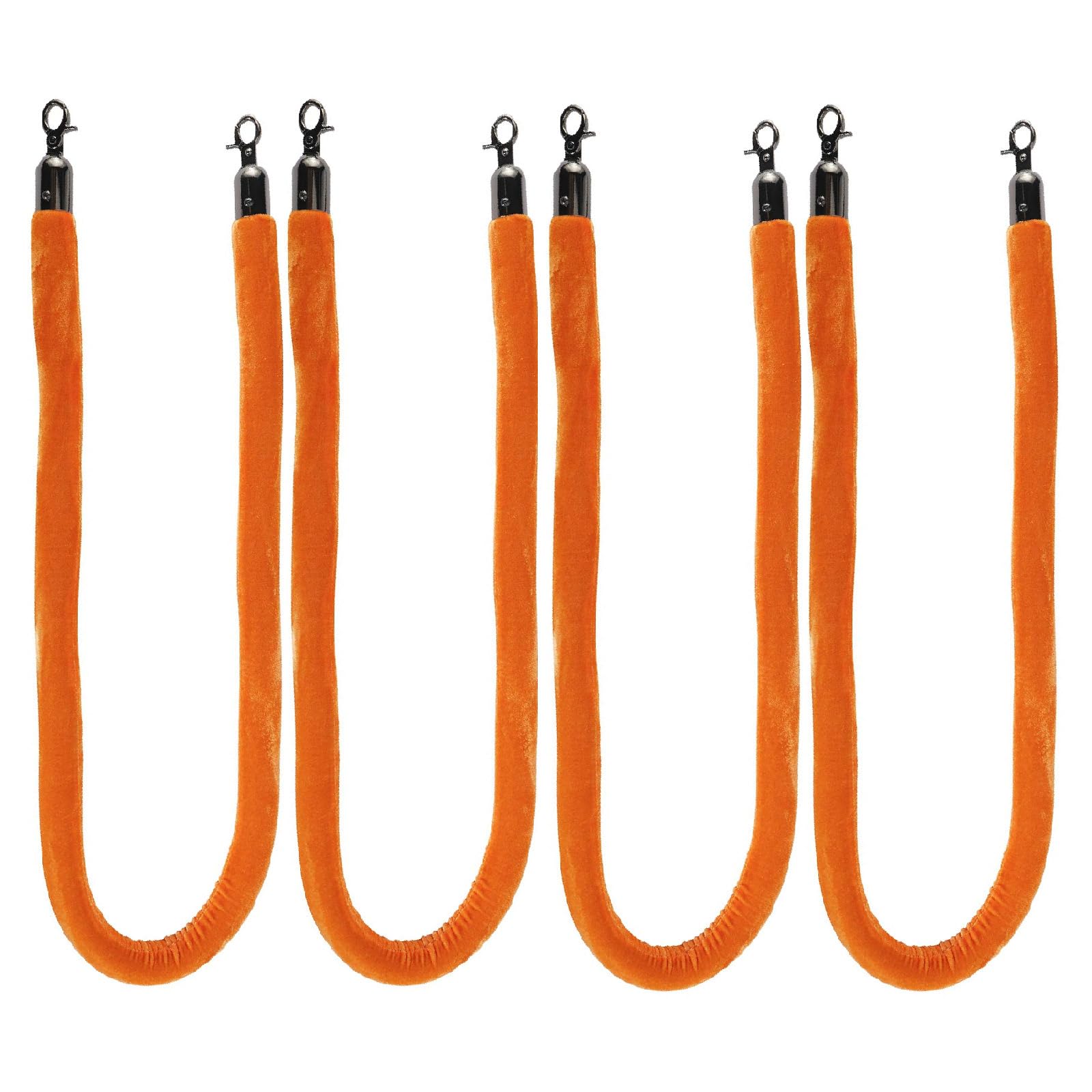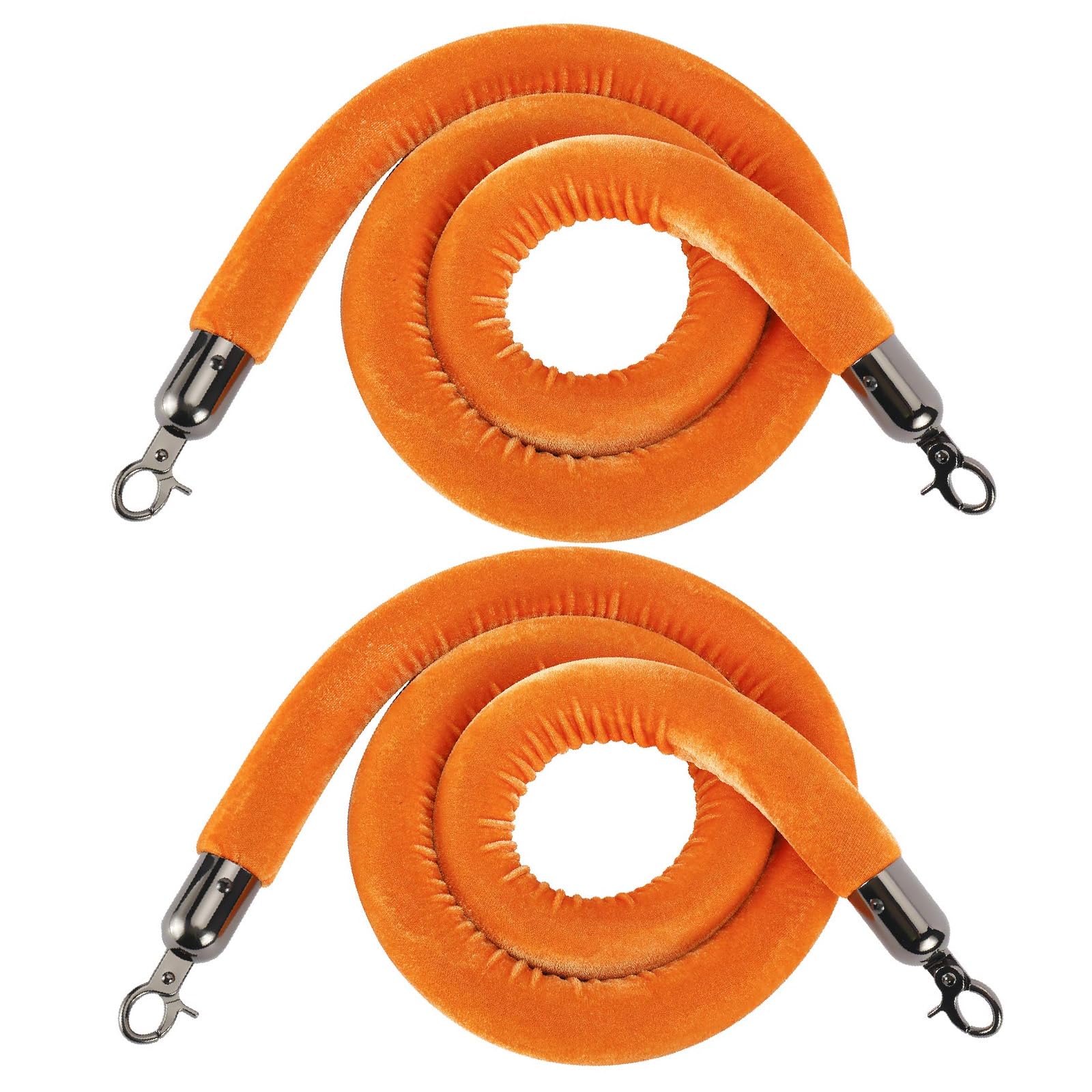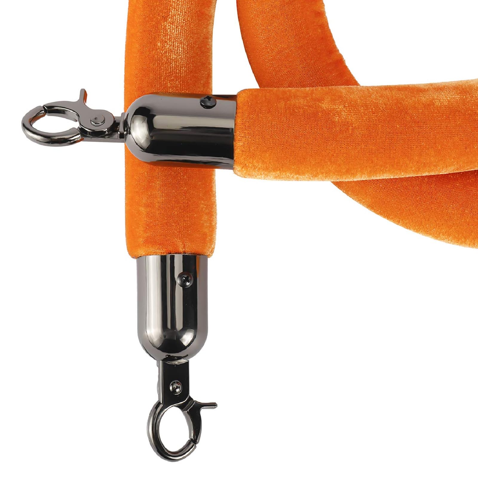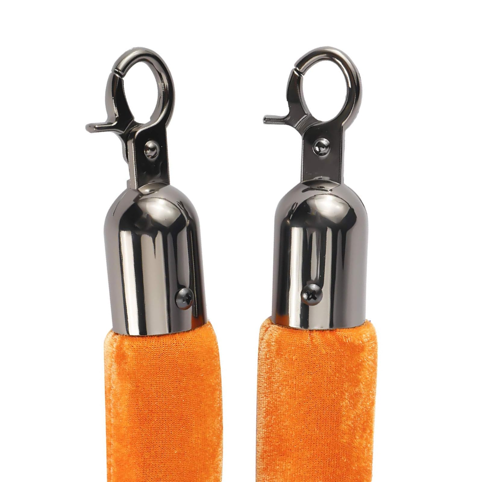 Orange rope safety barriers with stainless steel black hooks fit most stanchion posts